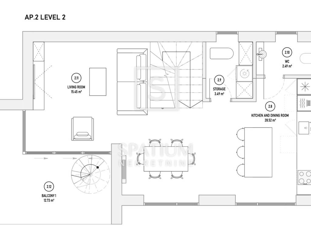 MATULJI, PAVLOVAC, u ponudi je dvoetažni stan u novogradnji na odlično prometno povezanoj lokaciji. Na prvoj etaži su tri spavaće sobe površine od deset do dvanaest metara kvadratnih. Jedna spavaća soba ima en-suite kupaonicu, dok je druga kupaonica smještena na središnjem djelu etaže. Prostorije su ispunjene obiljem prirodnog svjetla zahvaljujući orijentaciji objekta i velikim staklenim površinama. Do druge etaže vodi nas unutrašnje stubište. Cijela druga etaža ima otvoreni koncept prostorije koja dijeli funkciju kuhinje, blagovaonice i dnevnog boravka iz kojeg je izlaz na balkon s kojeg se pruža predivan pogled na Opatiju. Dodatno vanjsko stubište vodi nas na prostranu krovnu terasu koja je stvorena za druženje s prijateljima i obitelji.