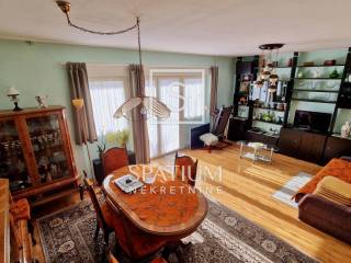 BRESTOVICE, u ponudi je dvoetažan stan s garažom. Smješten u jednoj polovici obiteljske kuće, stan u prizemlju ima veliki dnevni boravak s izlaskom na balkon s kojeg se pruža predivan pogled na more, odvojenu dvostranu kuhinju s puno radne površine i jednu kupaonicu. Stan je južne orijentacije što doprinosi obilju prirodnog svjetla tijekom cijelog dana. Većinu stana prekriva odlično očuvani parket. U ulaznom hodniku je drveno unutrašnje stubište koje vodi na drugu etažu na kojoj se nalaze tri spavaće sobe, druga kupaonica i četvrta soba manje kvadrature koja može poslužiti kao ured. Iz glavne spavaće sobe također vodi izlaz na drugi balkon s panoramskim pogledom na more.