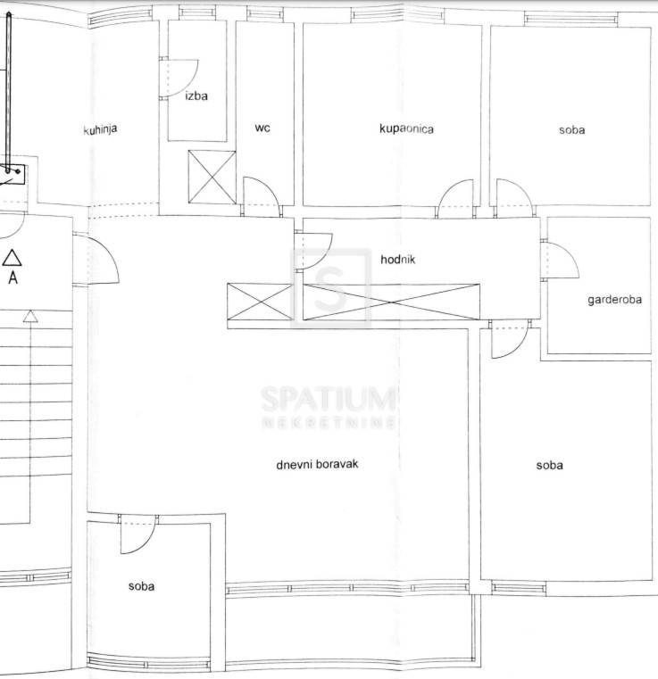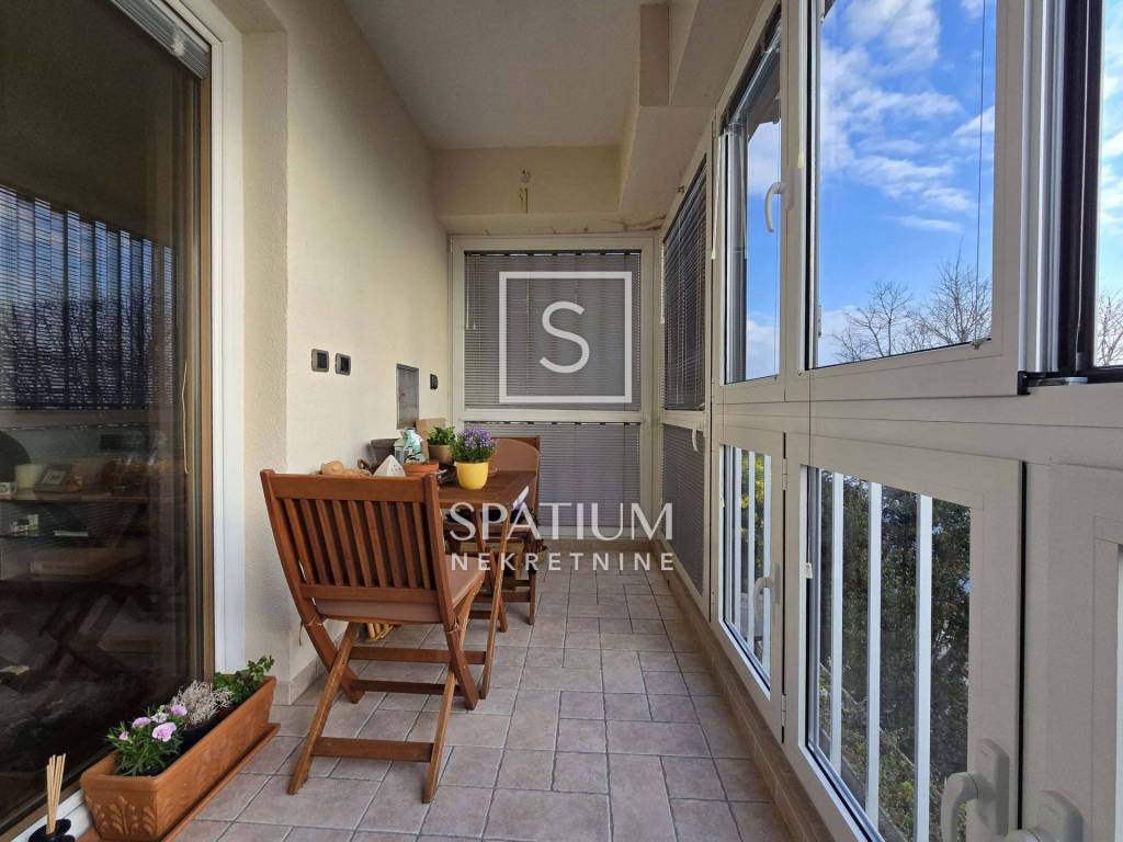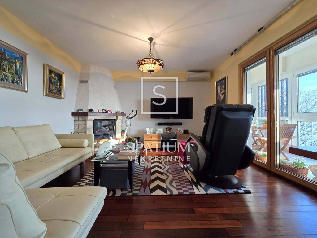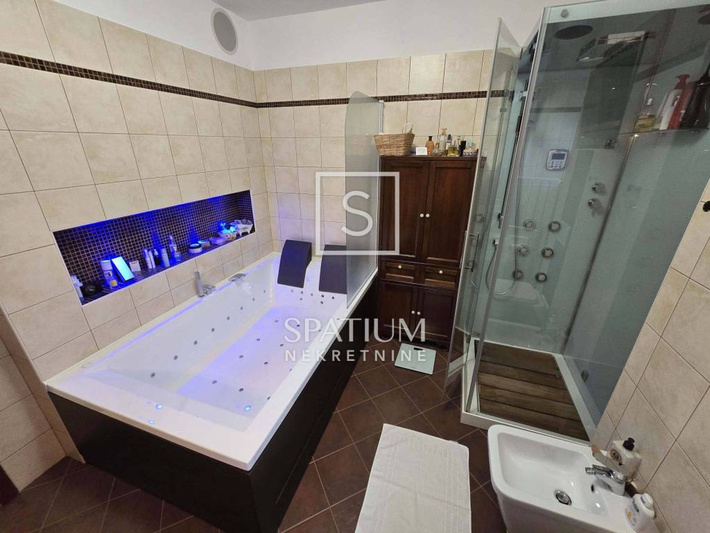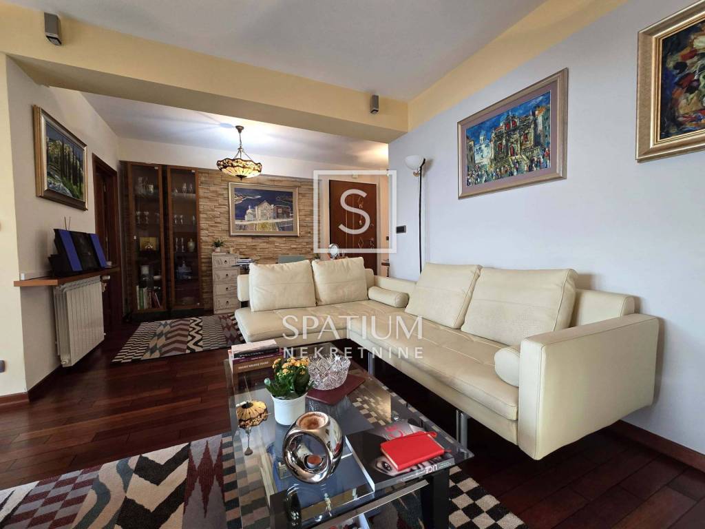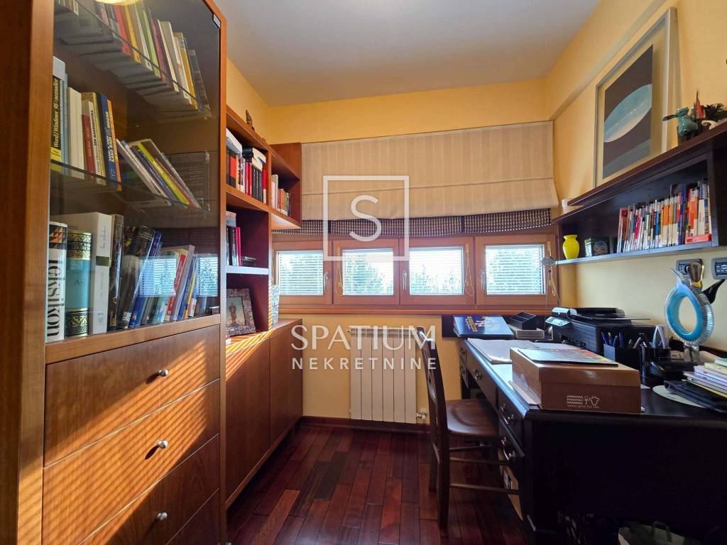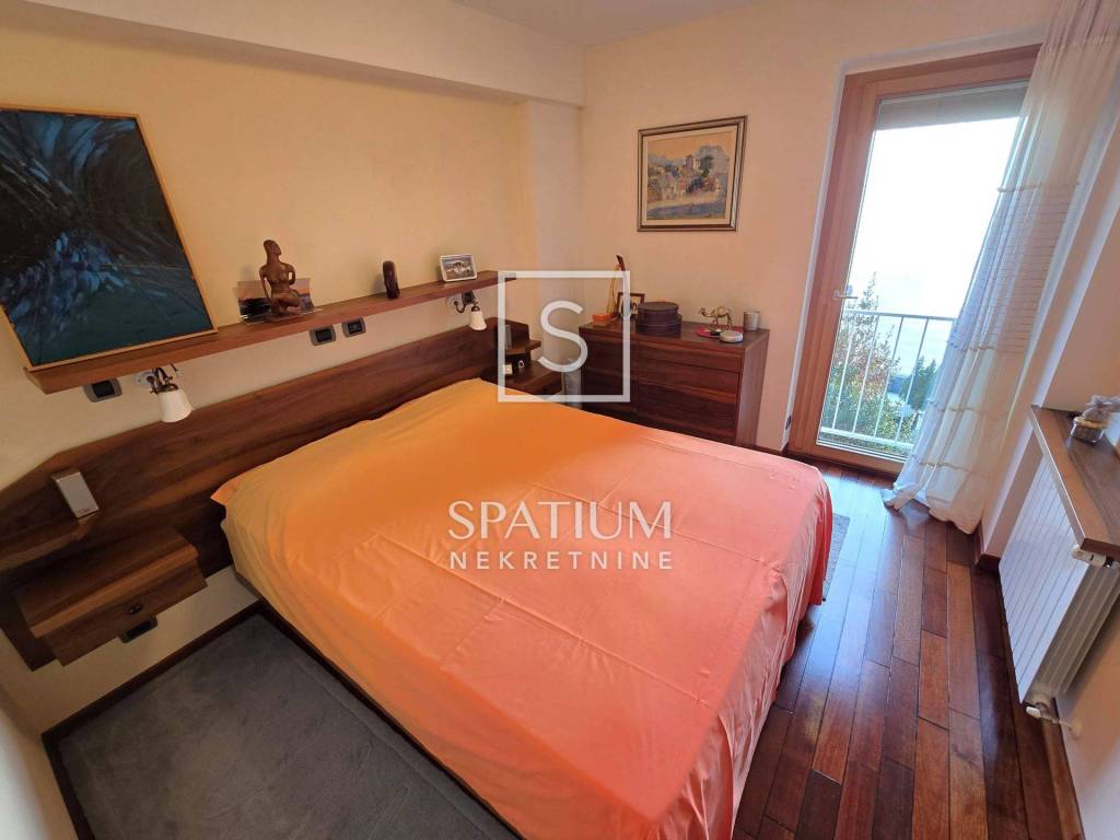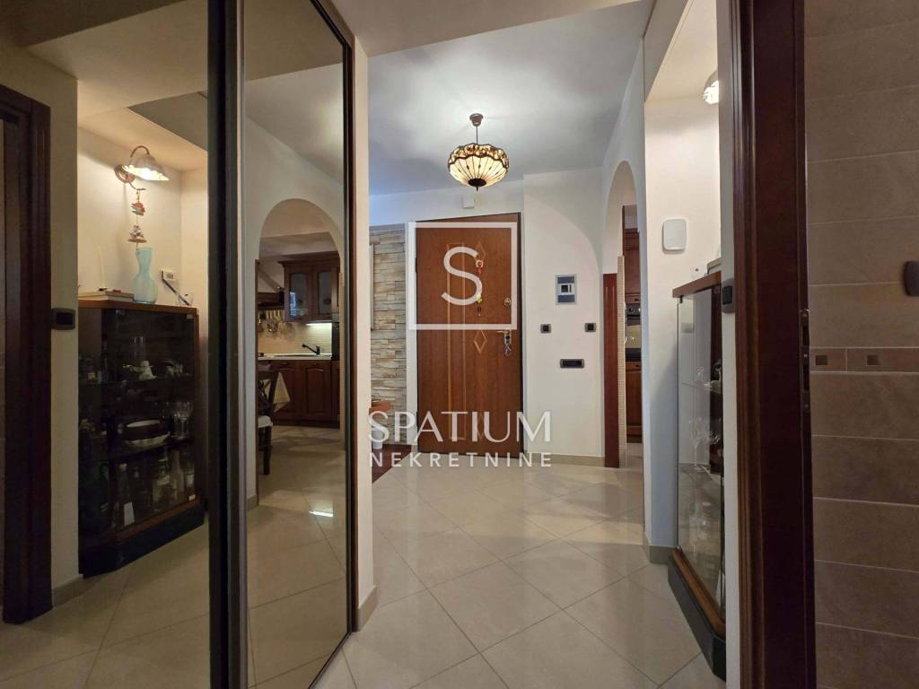 Sastoji se od otvorenog dnevnog prostora gdje su kuhinja s ostavom i dnevni boravak iz kojeg se izlazi na zatvorenu lođu. U tom je dijelu ulaz u manju, radnu sobu te gostinjski toalet. Odvojeni spavaći dio sastoji se od velike kupaone s tušem i hidromasažnom kadom a hodnik koji je odlično iskorišten postavljanjem velikih ugradbenih ormara, povezuje još dvije spavaće sobe i garderobu.