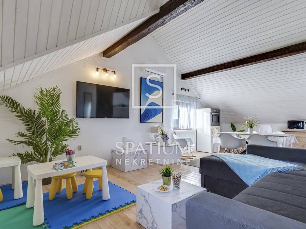 Na svakoj etaži kuće uređen je stan sa kuhinjom, dnevnim boravkom, dvije spavaće sobe i kupaonom. Potpuno namješteno i opremljeno.