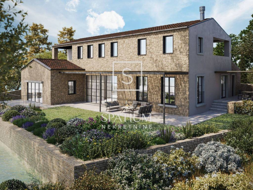 ISTRA, u ponudu smo dobili autohtonu kamenu vilu u izgradnji. Veličina interijera je 270 m2 sa četiri spavaće sobe, svaka s vlastitom kupaonicom, velikim otvorenim prostorom za kuhinju i blagovaonicu, s vrlo prostranim dnevnim boravkom i dvije galerije na katu. Unutarnji dio sadrži wellness s vanjskim dnevnim boravkom. Okućnica od 1.010 m2 sadrži bogat sadržaj s ljetnom kuhinjom, dvije terase, sunčalište i potpuno jedinstven bazen. Vila se nalazi udaljena samo desetak kilometara od grada Novigrada, prvih plaža i svih potrebnih sadržaja. Nalazi se na proplanku s fantastičnim pogledom na more, vinograde i maslinike okružena prirodom, mirom i tišinom te nudi potpunu privatnost. Nekretnina je pravi spoj moderne arhitekture i temelja stare kamene kuće. Zbog svoje iznimne lokacije i sadržaja ova luksuzna vila je odlična prilika kao vila za odmor, turizam ili za cjelogodišnje stanovanje. Rok završetka radova će biti kroz 12 mjeseci. Kupac može birati završne detalje kuće unutar zadanog budžeta.