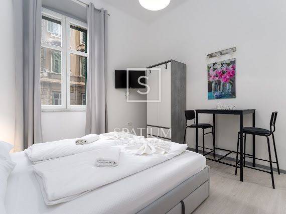RIJEKA, CENTAR, u ponudu smo dobili tri studio apartmana na par koraka od Korza. Smješteni na prvom katu zgrade, svaki studio apartman je površine oko 20 m2 te s hodnicima i pretprostorima čine ukupnu stambenu površinu od 70 m2. Zadnja velika adaptacija izvršena je 2022. godine, kad je cijeli prostor adaptiran s novim instalacijama struje i vode, podovima, stolarijom, namještajem te aparatima. Svaki apartman ima Internet, televiziju i klima uređaj. Zahvaljujući svojoj mikrolokaciji, stan nudi jako dobru priliku u vidu investicije te već godinama savršeno funkcionira kao nekretnina za najam studentima te za dnevni najam tijekom ljetne sezone. Apartmani se prodaju kompletno uređeni i namješteni.