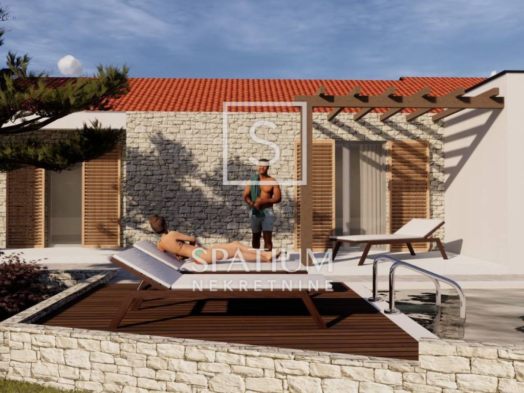 GOSTINJAC, ekskluzivno kod nas, u ponudu smo dobili dvojnu prizemnicu u novogradnji s bazenom na mirnom dijelu otoka.
