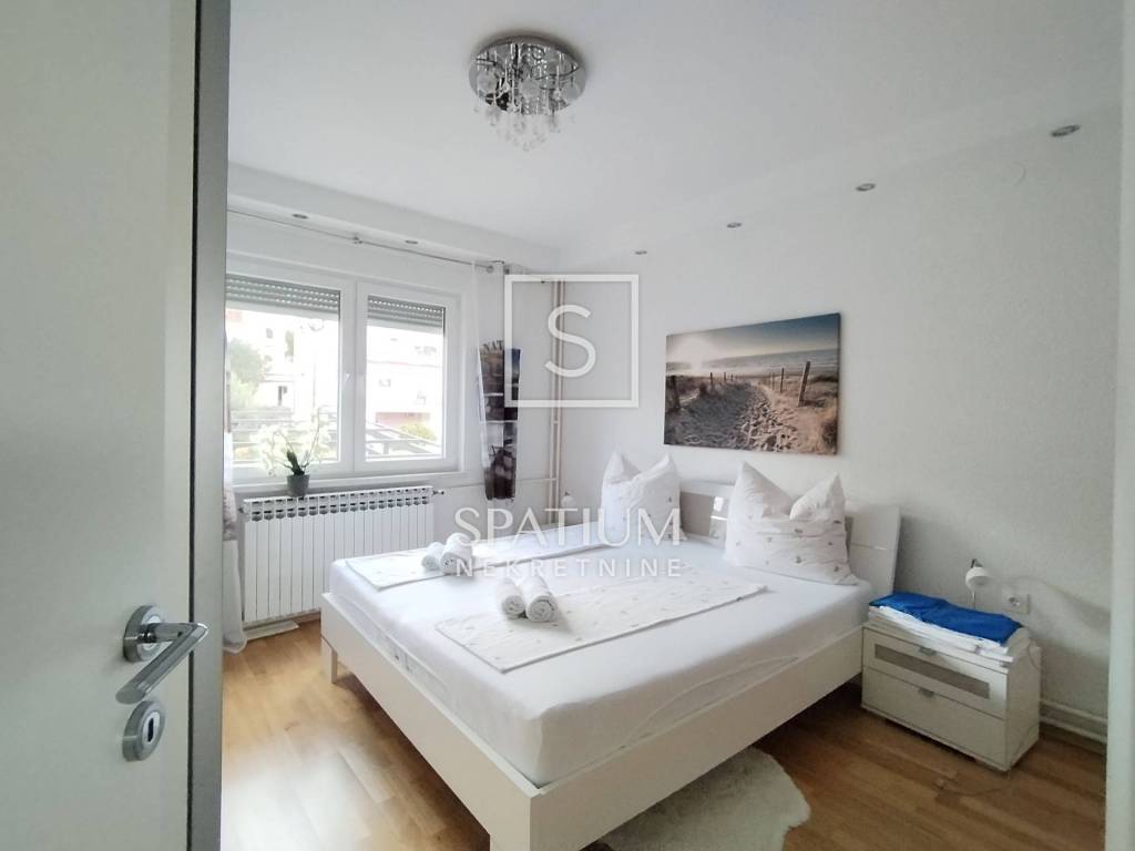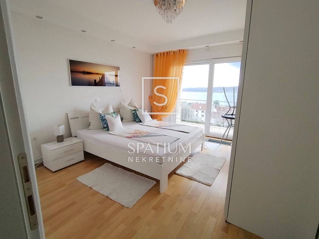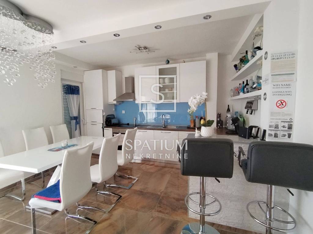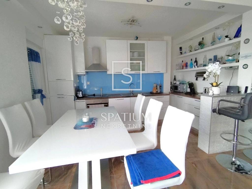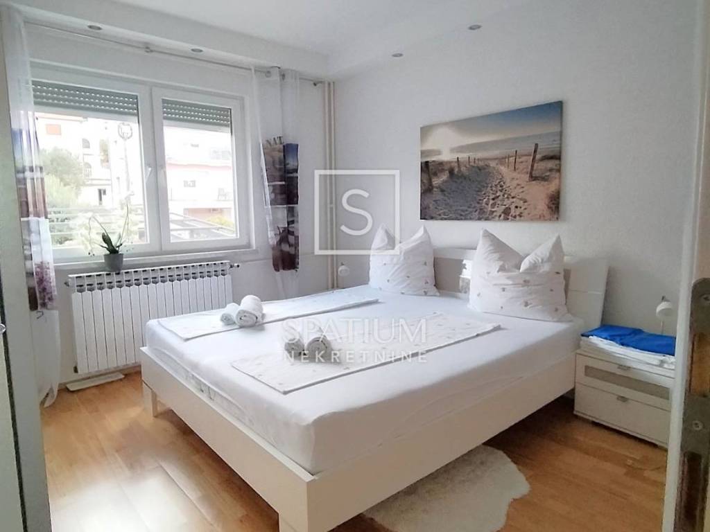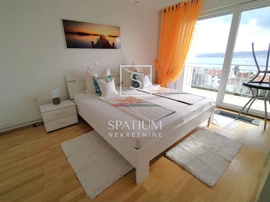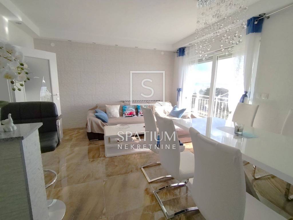 CRIKVENICA, u ponudu smo dobili trosoban stan površine 82.17 m2 s panoramskim pogledom. Sastoji se od kuhinje, blagovaone povezane s dnevnim boravkom iz kojeg se izlazi na prostrani balkon od 11.64 m2. Sadrži tri spavaće sobe s jednom lođom te jednu veću i manju kupaonicu. Moderno opremljen kvalitetnom tehnikom i odličnog je rasporeda. Nekretnini pripada jedno parkirno mjesto i spremište od 3.56 m2. Radi svoje mikrolokacije, blizine mora i svih bitnih sadržaja idealna je prilika za obiteljsko dugoročno stanovanje kao i za ulaganje u turističku djelatnost.