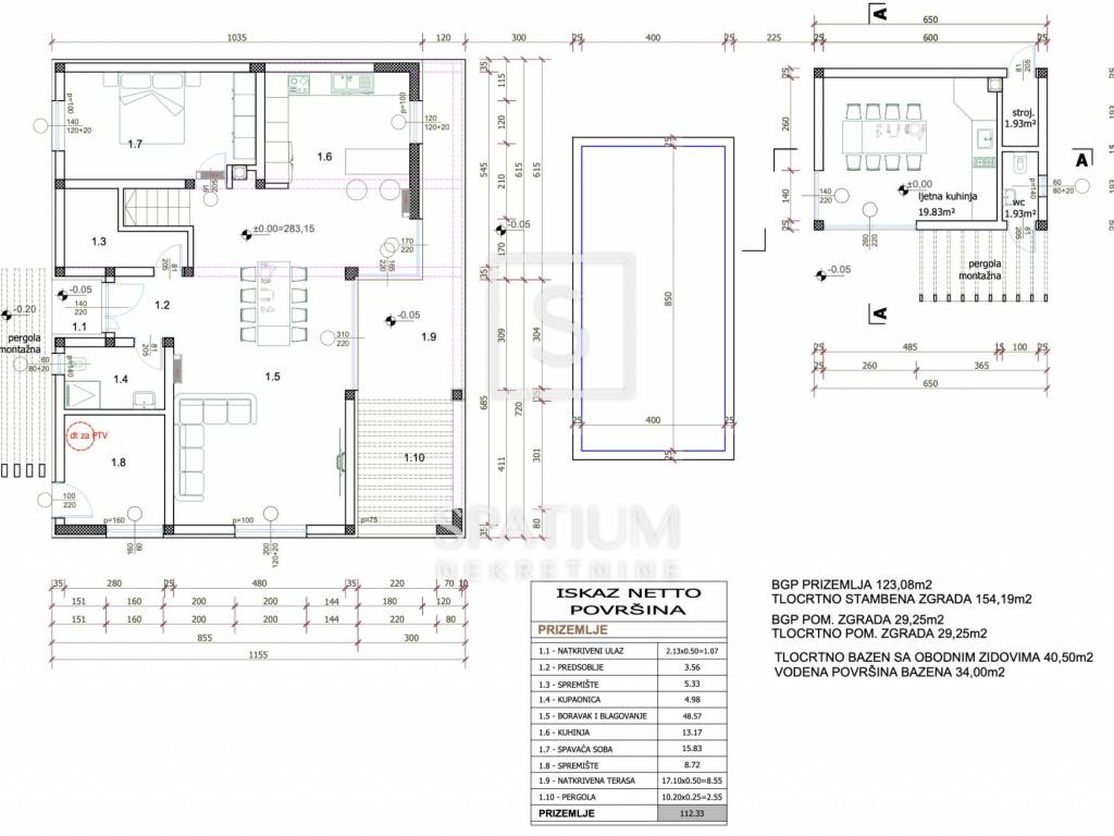 Građevinska dozvola odnosi se na kuću koja se sastoji od prizemlja, kata, ljetne kuhinje i bazena.
