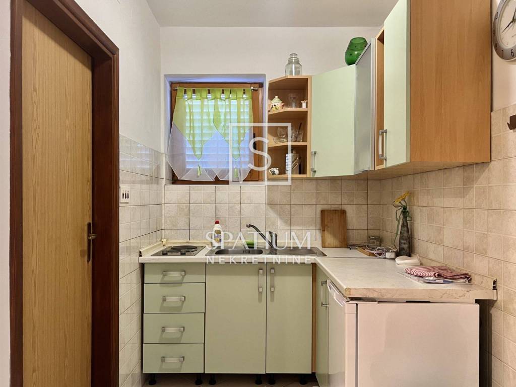 Uz stan se nalazi i uređeno spremište u suterenu zgrade, površine 35,79 m² (obračunski 26,84 m²), koje je preuređeno u posebnu stambenu jedinicu s kuhinjom, kupaonicom, blagovaonicom i većim dnevnim prostorom s ležajem. Grijanje u tom dijelu osigurano je sa peći na kruta goriva.