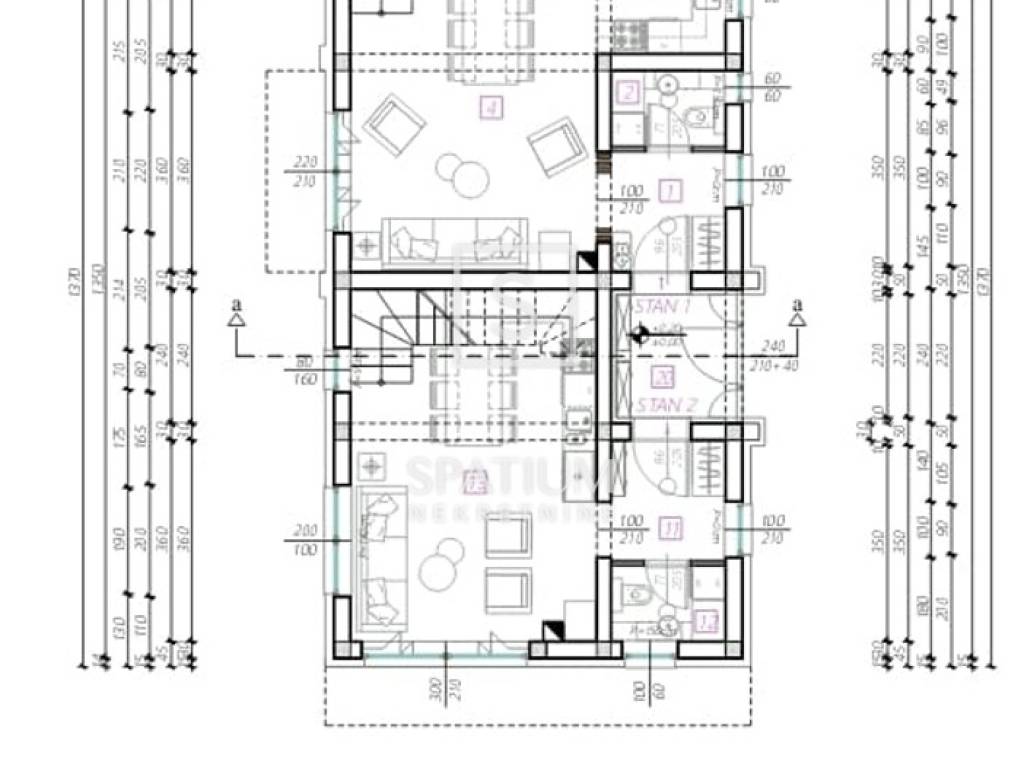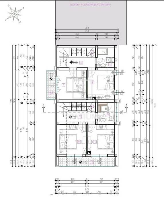 Projekt dozvoljava izgradnju dva dvoetažna stana svaki površine od 79 m2. Teren je ravan i pravilnog oblika, svi priključci se nalaze u blizini.