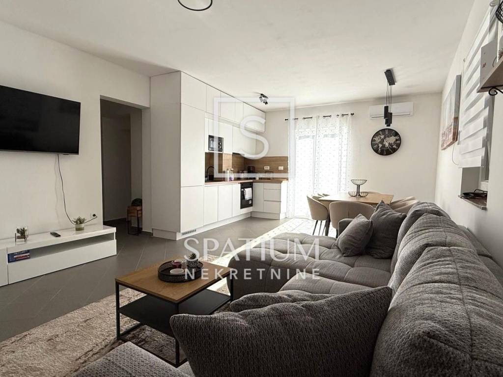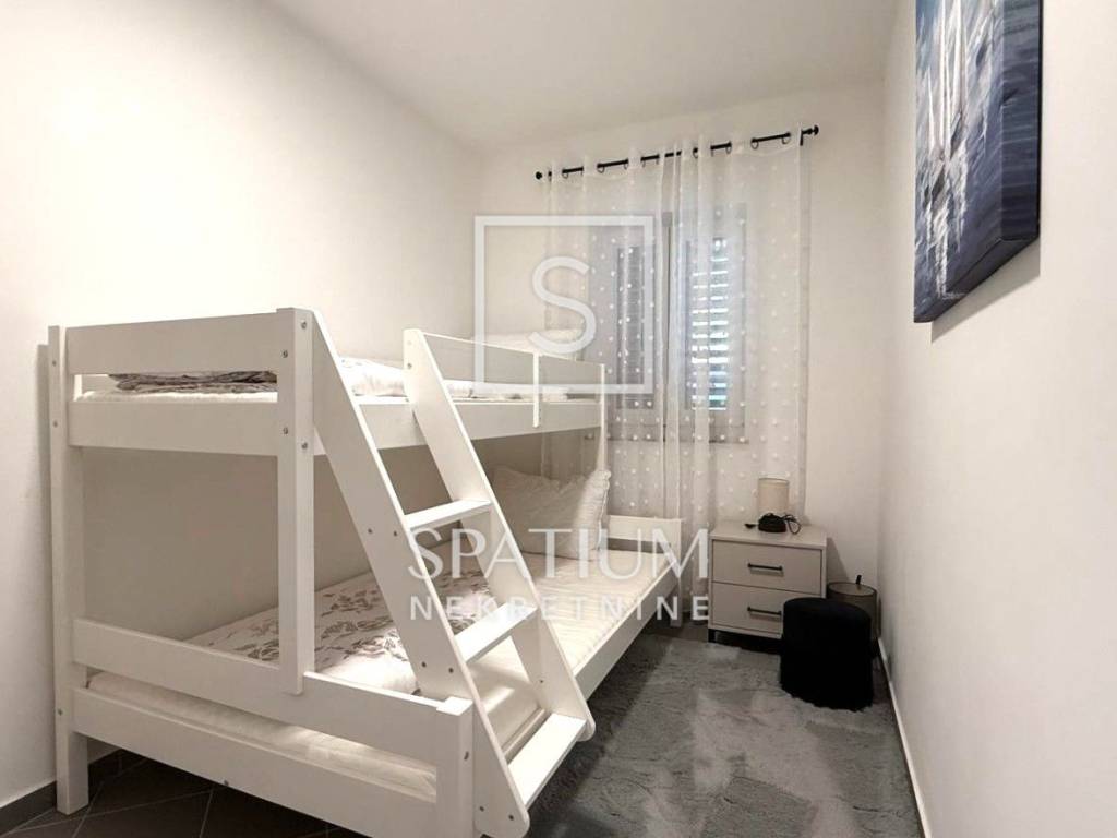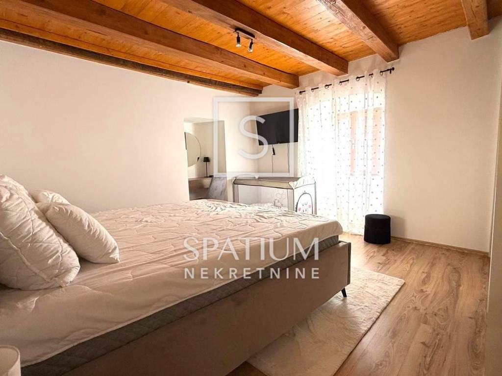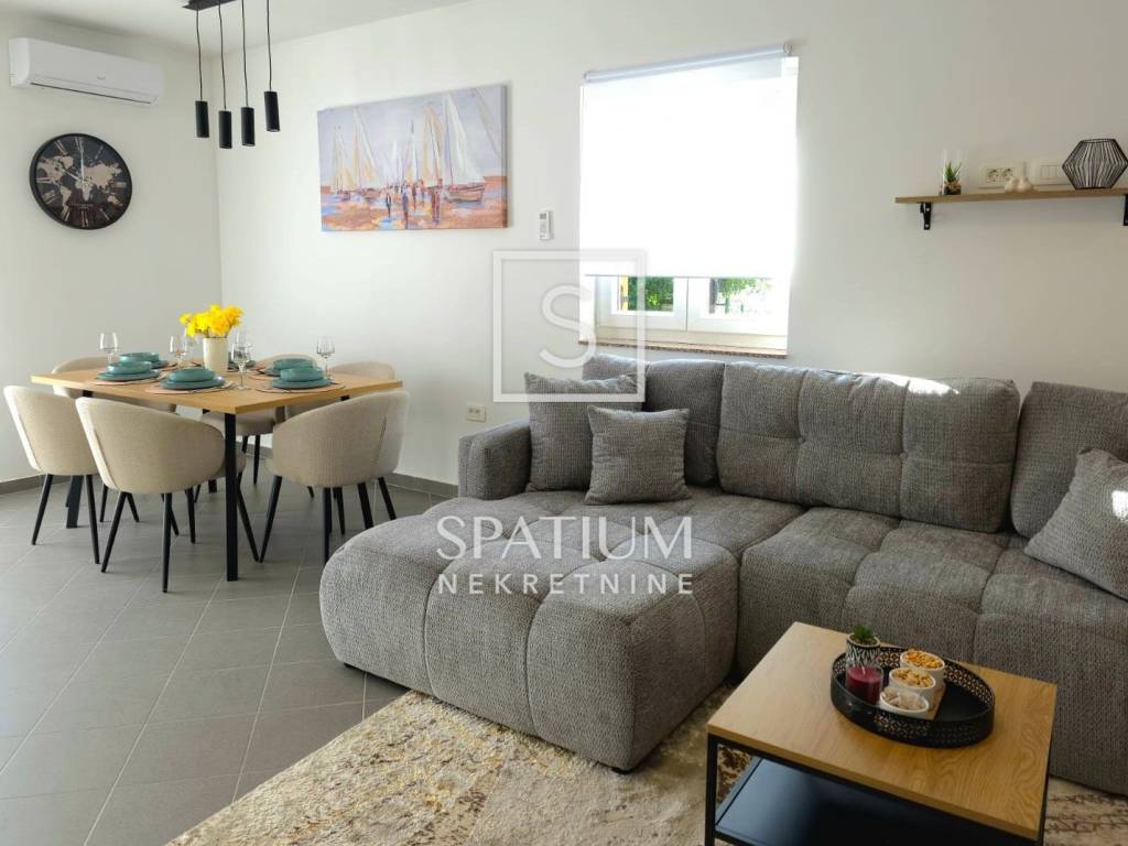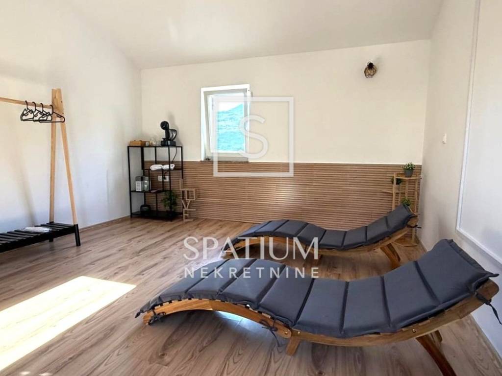 Okućnica je u potpunosti uređena i iskorištena na funkcionalan način – tu se nalaze parkiralište, dječje igralište i grill zona. Tijekom renovacije obnovljene su sve podne i zidne obloge, instalacije, sanitarije i stolarija, a postavljena je nova kuhinja i kompletan namještaj, tako da se kuća prodaje potpuno opremljena. Dokumentacija je uredna, a s obzirom na sadržaje koje nudi, nekretnina je idealna i kao obiteljska kuća i kao investicija za turistički najam.