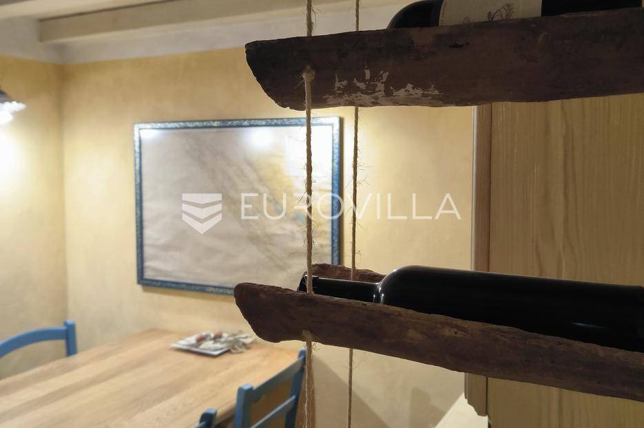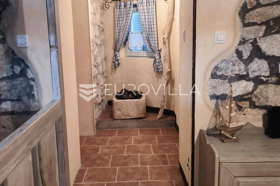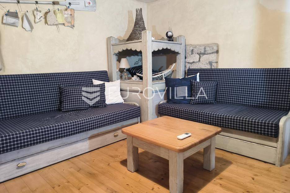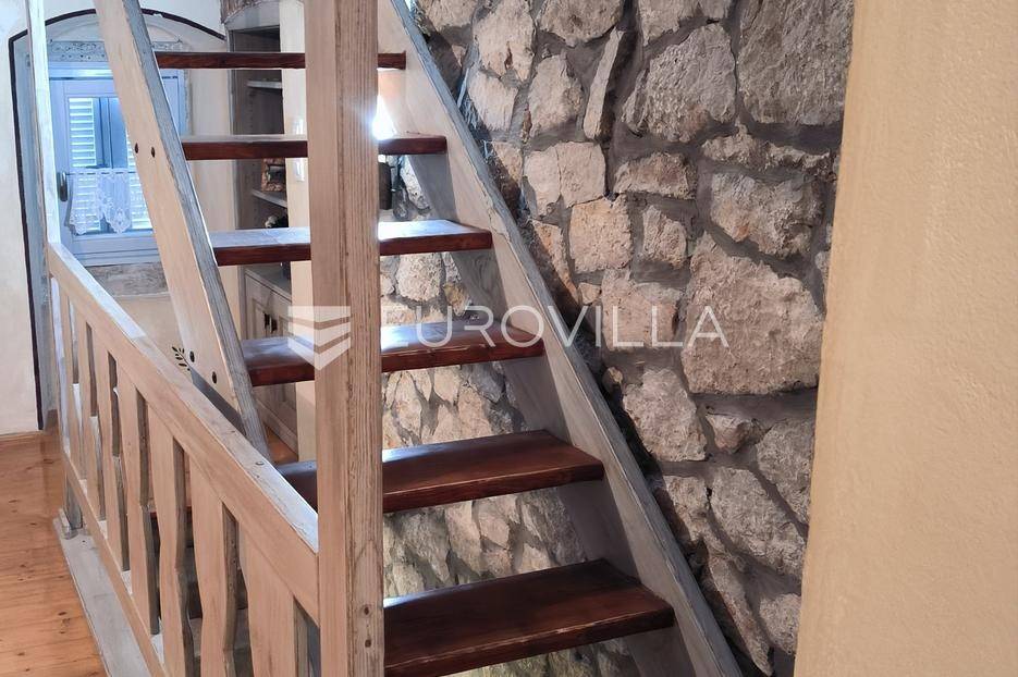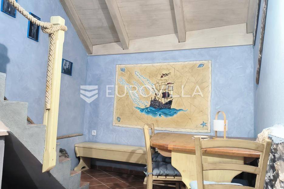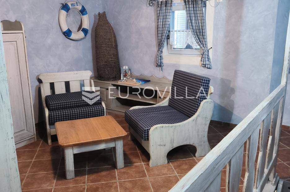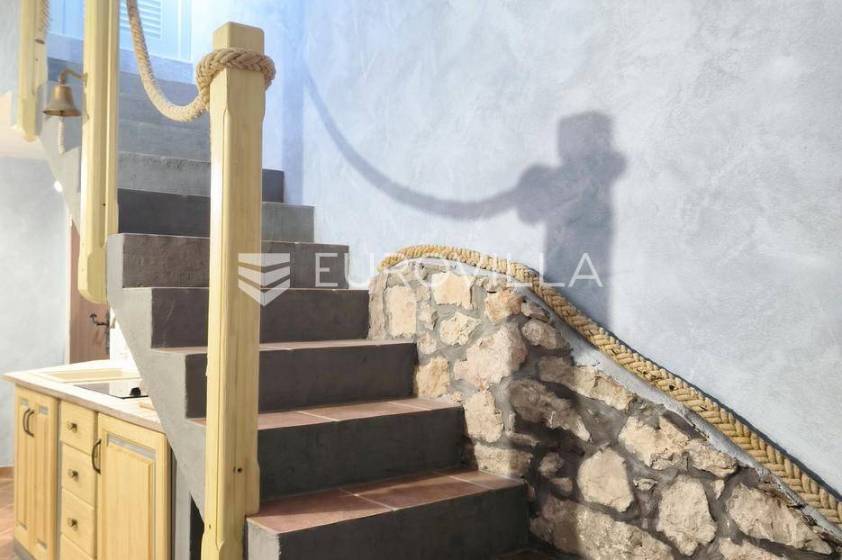 Otkrijte ovu autentičnu mediteransku kamenu kuću na Velom Ižu, smještenu samo 150 metara od mora i centra ovog malog dalmatinskog mjesta na bajkovitom otoku zadarskog arhipelaga, Ižu!Izgrađena sredinom prošlog stoljeća, ali u svojoj nedavnoj povijesti, nekoliko puta temeljito renovirana i restaurirana, od čega zadnji put, 2020., ova višeetažna kamena kuća u nizu zaista odiše dalmatinskim štihom i šarmom. Kuća se sastoji od ukupno 4 etaže te je ukupne neto površine, 94m2.Na prvoj etaži nalazi se zimska kuhinja s blagavaonicom te kupatilo. Potom se kamenim stubištem penjemo na drugu etažu gdje se nalazi prostrani dnevni boravak te spavaća soba. Treća etaža se sastoji od još jedne spavaće sobe te ljetne kuhinje s blagavaonicom i stubištem koje vodi na terasu, s koje se pruža pogled koji će zaista malo koga, ostaviti ravnodušnim.Sve prostorije su u potpunosti opremljene kvalitetnim namještajem te dizajnirane u skladu s lokacijom na kojoj se i nalaze. Prekrasna bijela kamena fasada debljine 70 do 100cm te krov su također renovirani. U skladu sa svime time, kuća ne zahtjeva nikakva dodatna ulaganja te je u potpunosti sprema za useljenje!Veli Iž je prekrasno otočno mjesto smješteno u zadarskom arhipelagu, između Dugog otoka i Ugljana. Poznat je po svojoj tradicionalnoj kamenoj arhitekturi, uskim ulicama i očuvanom mediteranskom duhu. Mještani se bave ribarstvom, turizmom i posebno maslinarstvom, a maslinovo ulje s Iža slovi kao jedno od najboljih u Dalmaciji. Veli Iž je idealno mjesto za sve koji traže mir, autentičnost i ljepotu dalmatinskog otočkog života i odmora.Ne propustite posjedovati ovaj prekrasan komadić Mediterana te nam se javite kako bismo vam dali više infomacija i dogovorili obilazak nekretnine