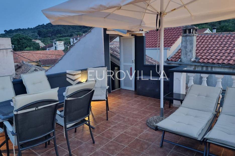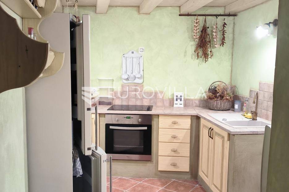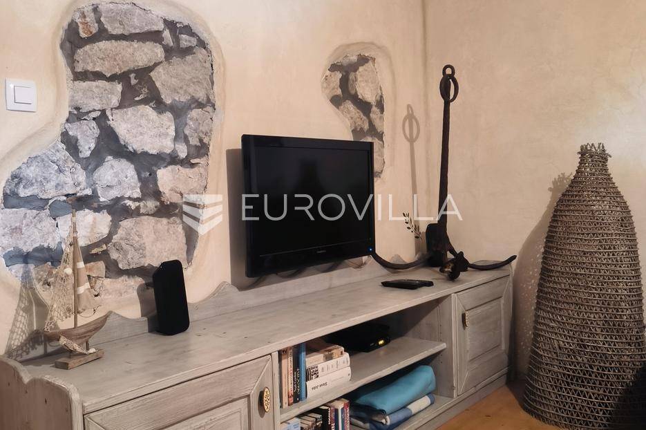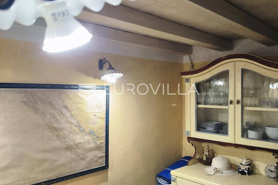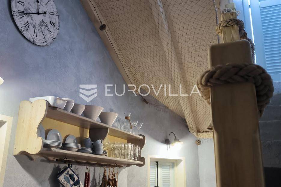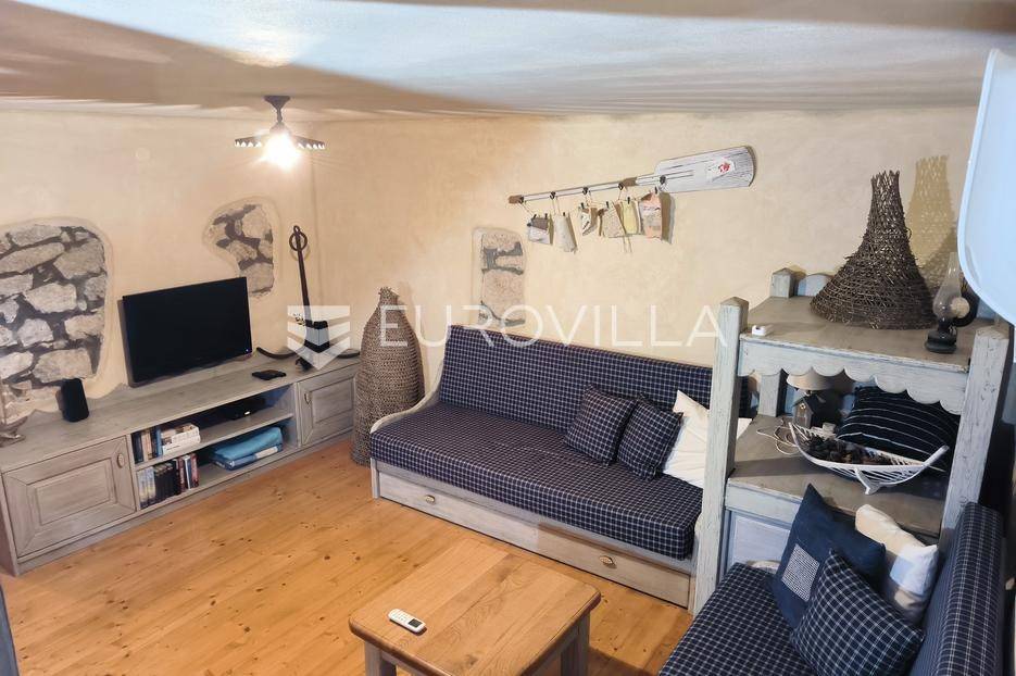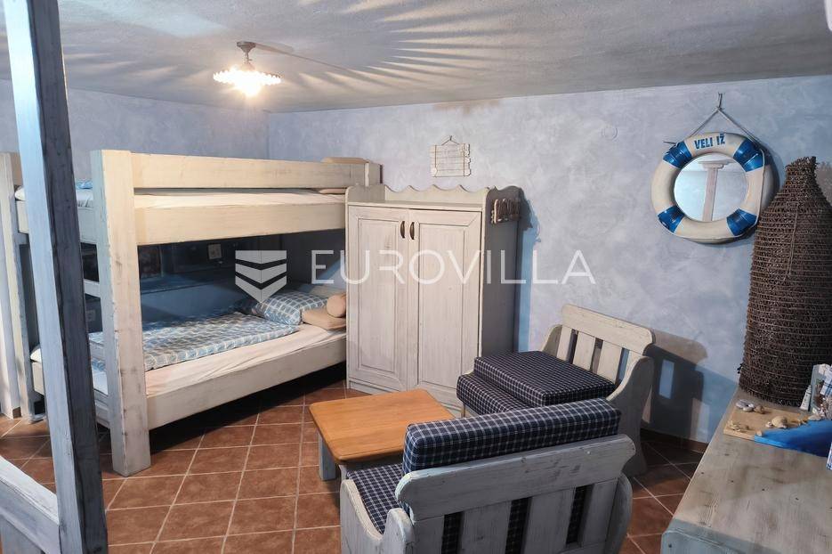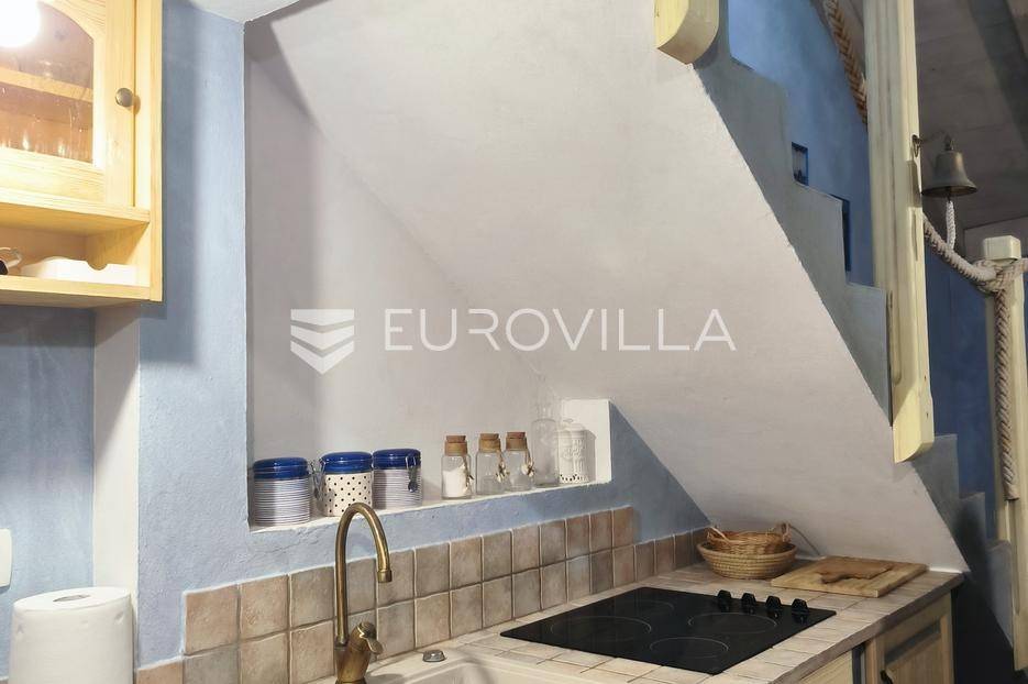 Otkrijte ovu autentičnu mediteransku kamenu kuću na Velom Ižu, smještenu samo 150 metara od mora i centra ovog malog dalmatinskog mjesta na bajkovitom otoku zadarskog arhipelaga, Ižu!Izgrađena sredinom prošlog stoljeća, ali u svojoj nedavnoj povijesti, nekoliko puta temeljito renovirana i restaurirana, od čega zadnji put, 2020., ova višeetažna kamena kuća u nizu zaista odiše dalmatinskim štihom i šarmom. Kuća se sastoji od ukupno 4 etaže te je ukupne neto površine, 94m2.Na prvoj etaži nalazi se zimska kuhinja s blagavaonicom te kupatilo. Potom se kamenim stubištem penjemo na drugu etažu gdje se nalazi prostrani dnevni boravak te spavaća soba. Treća etaža se sastoji od još jedne spavaće sobe te ljetne kuhinje s blagavaonicom i stubištem koje vodi na terasu, s koje se pruža pogled koji će zaista malo koga, ostaviti ravnodušnim.Sve prostorije su u potpunosti opremljene kvalitetnim namještajem te dizajnirane u skladu s lokacijom na kojoj se i nalaze. Prekrasna bijela kamena fasada debljine 70 do 100cm te krov su također renovirani. U skladu sa svime time, kuća ne zahtjeva nikakva dodatna ulaganja te je u potpunosti sprema za useljenje!Veli Iž je prekrasno otočno mjesto smješteno u zadarskom arhipelagu, između Dugog otoka i Ugljana. Poznat je po svojoj tradicionalnoj kamenoj arhitekturi, uskim ulicama i očuvanom mediteranskom duhu. Mještani se bave ribarstvom, turizmom i posebno maslinarstvom, a maslinovo ulje s Iža slovi kao jedno od najboljih u Dalmaciji. Veli Iž je idealno mjesto za sve koji traže mir, autentičnost i ljepotu dalmatinskog otočkog života i odmora.Ne propustite posjedovati ovaj prekrasan komadić Mediterana te nam se javite kako bismo vam dali više infomacija i dogovorili obilazak nekretnine