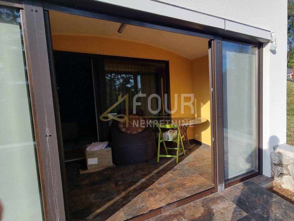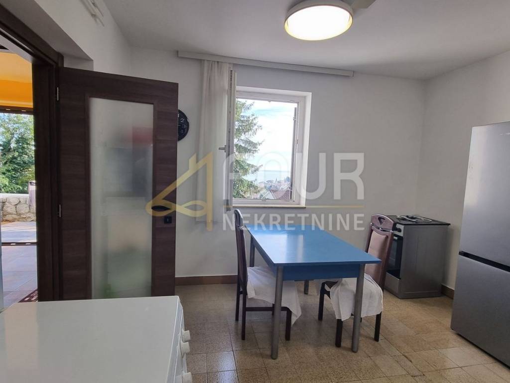 Južne je orijentacije, vrlo svijetao i osunčan, s velikim balkonom od 30m2 koji nudi predivan pogled na Volosko i more.