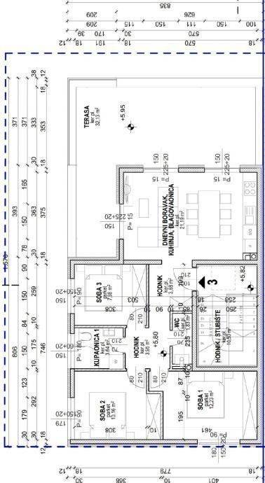 dnevnog boravka/blagovaone/kuhinje(21,19m2)