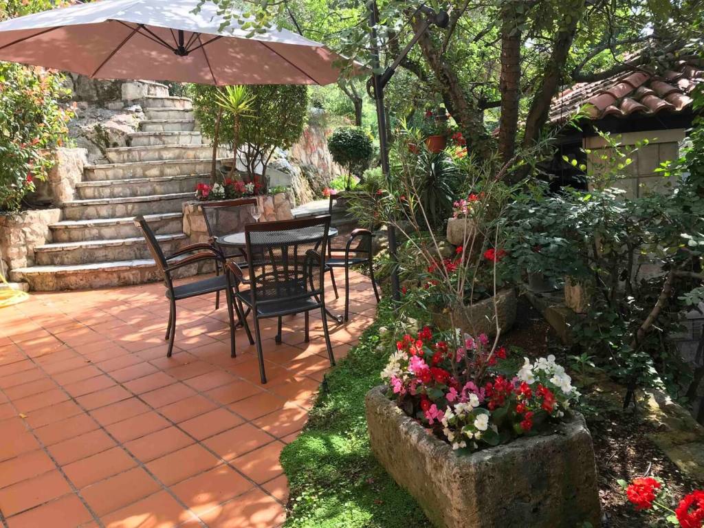 Okućnica je uređena s prekrasnim kamenim vrtovima, stepeništima i terasama u mediteranskom stilu s 40 stabala maslina, naranči, limuna, palmi i ostalih mediteranskih biljaka, te posađenom travom na ravnim površinama.