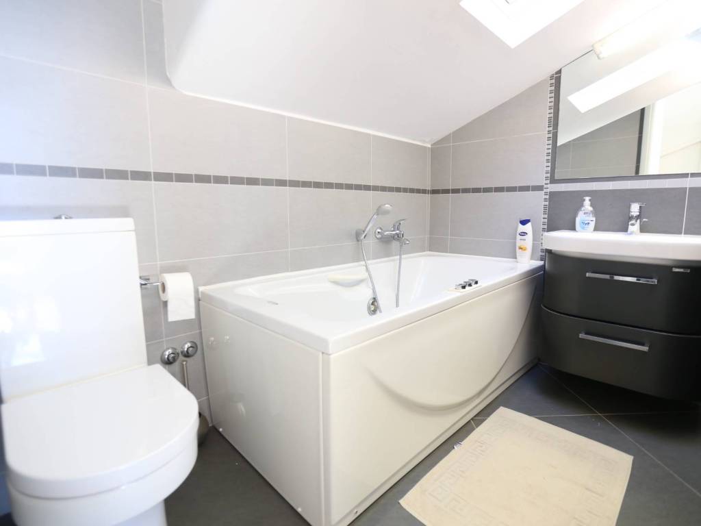 Kući pripada i garaža od 30 m2, te jedan odvojeni objekt, apartman veličine 32 m2. Apartman ima zaseban ulaz i sastoji se od kuhinje, spavaće sobe, kupaonice i terase. Apartman je idealan za najam ili kao opcija smještaja za goste ili poslugu.