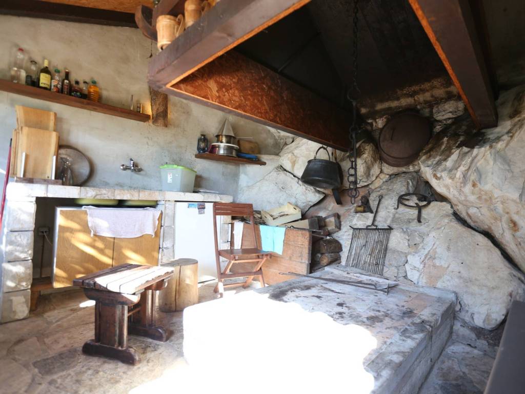 Vanjska terasa veličine 30 m2, opremljena je kompletnom plinskom kuhinjom, stolom za 14 osoba, kamenim sudoperom, te roštiljem i malom dizalicom za drva. S terase se dolazi i do malog objekta od 3,5 m2, u kojem je smješten vešeraj i smočnica.