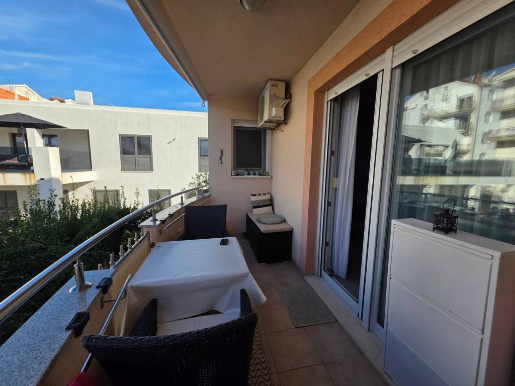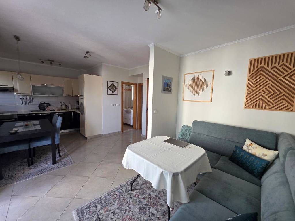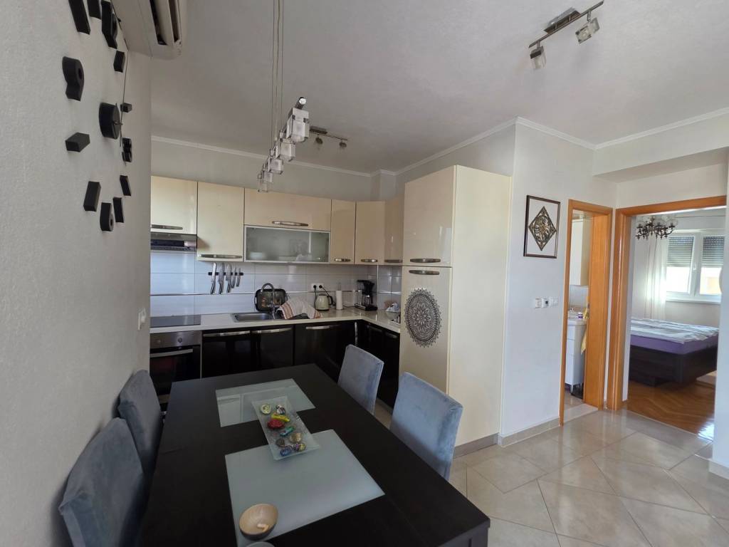 Dodatno, stan je opremljen klima uređajem, što omogućuje ugodnu atmosferu tijekom cijele godine. Posebno se ističe mirna lokacija uz more, što ga čini idealnim izborom za one koji traže mir i privatnost, ali i žele uživati u pogledu na more.