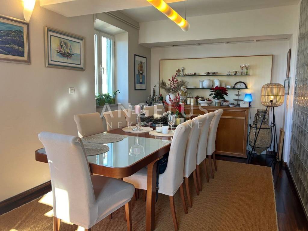 For sale is a top-quality, fully adapted duplex apartment with a total area of 163 m2, located on the 3rd floor of a small residential building. The apartment is mainly oriented to the south and west, it is full of light, extremely high ceilings, completely furnished with custom-made furniture and equipped with top-quality appliances. It consists of an entrance area, a large dining room and kitchen, two bedrooms, a bathroom and a utility room, which are located on the first floor of the apartment. The floors are interconnected with beautiful wooden stairs covered with exotic wood. On the second floor of the apartment there is a large living room, two bedrooms, a dressing room and a bathroom with a shower and jacuzzi. The living room has an exit to the terrace, which offers a magical view of the sea, the islands, the old city center and the Marjan forest park. It's literally as if you have the city in the "palm of your hand". The entire apartment is heated with heating oil. The owners currently use two parking spaces in the immediate vicinity of the apartment with the payment of a monthly fee.
