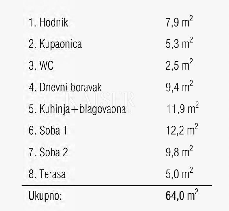 Kaiser Immobilien Ekskluzivno stavlja na tržište novi projekat na Martinkovcu. Predstavljamo predivan stan neto površine 64,0m2 (ukupna površina = 66,30m2).