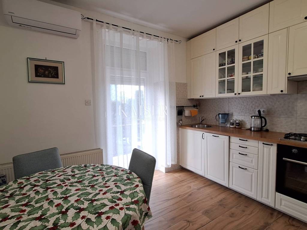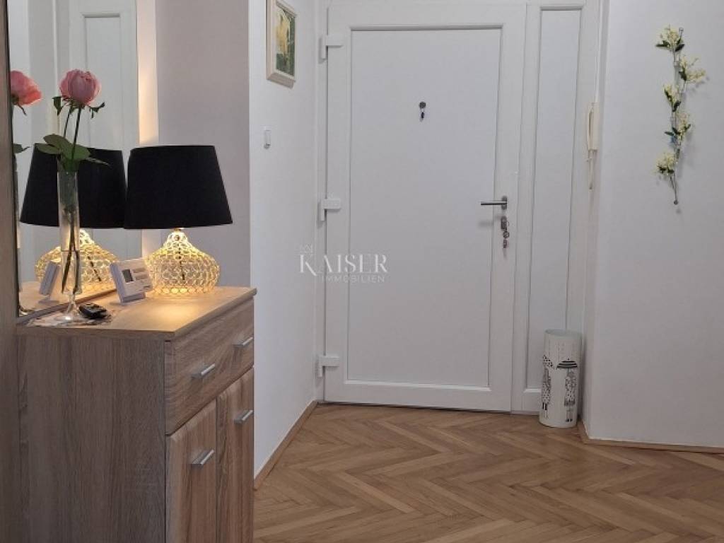 Na drugom katu održavane zgrade koja se sastoji od dvije etaže proteže se na 78 m2 stan koji se sastoji od :dvije spavaće sobe, hodnika, dnevnog boravka, kuhinje s balkonom, kupaonice s toaletom i toaleta. Stan je okrenut dvorišno tako da događaji i buka s ceste se ne odražavaju na samo stanovanje. Svi važni sadržaji nalaze se u neposrednoj blizini. Od Britanca smo udaljeni svega 10 -tak minuta laganog hoda ili dvije tramvajske stanice, a bogata ponuda tržnica u blizini nudi autohtone proizvode hrane naših vrijednih "kumica" koje ih svježe svakodnevno nude na štandovima.