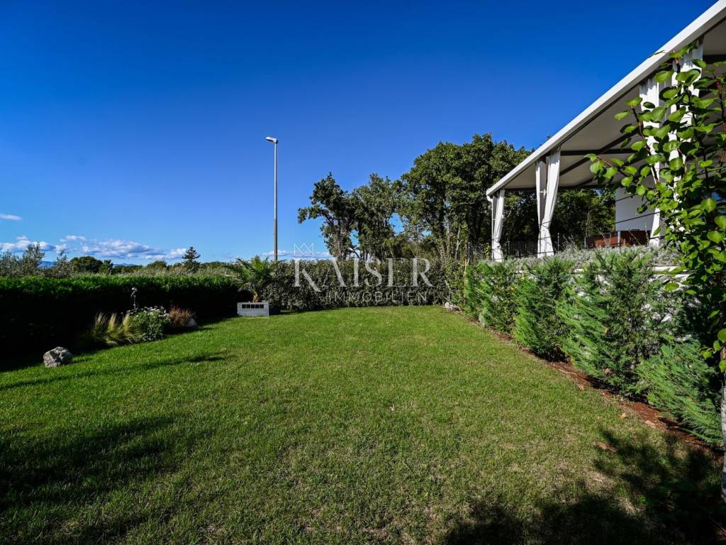 Okućnica, površine 918 m², potpuno je ograđena i uređena mediteranskim biljem, pružajući osjećaj privatnosti i mira. Novi vlasnici na raspolaganju imaju 4-5 parkirnih mjesta unutar ograde. U sklopu ove uređene vanjske oaze nalazi se i 6-metarski swim-spa bazen s protustrujnim plivanjem i jacuzzijem, kao i vrtni roštilj i vrtna kućica.