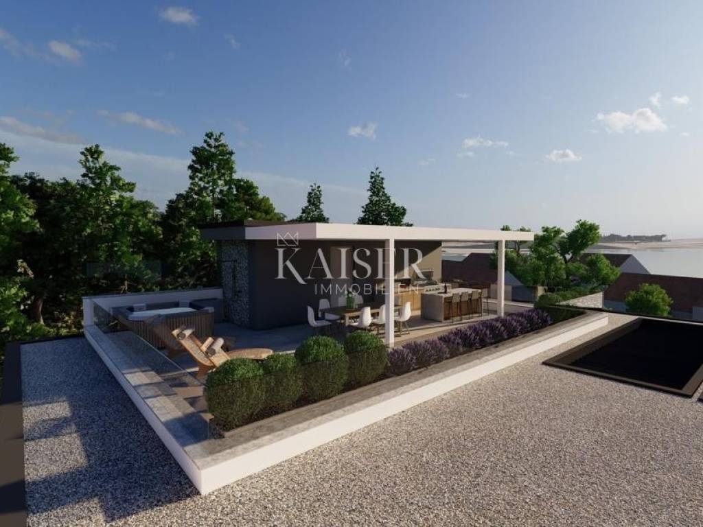 U srcu jedne od najatraktivnijih lokacija u Privlaci smjestila se ova ekskluzivna novogradnja s pet stambenih jedinica. Elegantno raspoređeni na tri etaže – prizemlje, prvi i drugi kat – ovi stanovi predstavljaju savršen spoj luksuza, udobnosti i suvremenog dizajna. Penthouse apartman "E", s ukupnom površinom od 272,70 m2 (od čega 192,40 m2 korisne površine), ističe se izvanrednim rasporedom i nesmetanim pogledom na more iz svake prostorije.