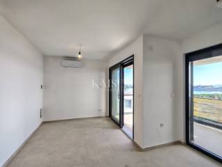 Stan se sastoji od funkcionalnog ulaznog hodnika površine 4,11 m², iz kojeg se s desne strane odmah ulazi u svijetli i otvoreni dnevni boravak, kuhinje i blagovaonice ukupne površine 18,39 m², iz kojeg se pruža izravan izlaz na prostrani, natkriveni balkon od 12,37 m²s priključkom za vodu. Balkon nudi očaravajući panoramski pogled na Omišalj, otok Lošinj, Učku pa sve do Rijeke i svakodnevno možete uživati u jednom od najljepših prizora zalaska sunca, dok sunce polako tone iza siluete Učke. Stan se sastoji od dvije spavaće sobe – jedne površine 10,52 m², te druge od 9,37 m² s pogledom na more – što ga čini idealnim za obitelj ili za odmor u paru. Kupaonica, veličine 4,54 m², opremljena je modernom sanitarijom, tuš kabinom, WC-om te bojlerom renomirane marke Terma kapaciteta 72L. Praktičnost korištenja dodatno povećava vanjska ostava površine 4,57 m² koja pripada isključivo ovom stanu i nalazi se odmah uz ulaz, na vanjskom hodniku.