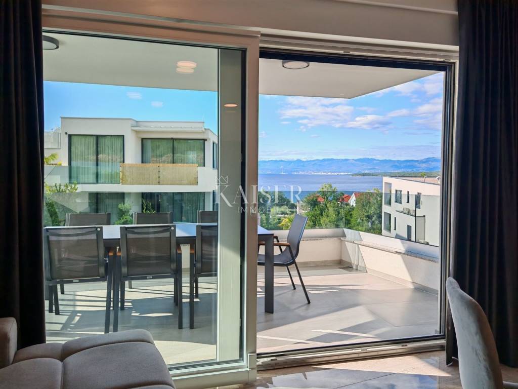 Kaiser Immobilien vam predstavlja luksuzan stan površine 114,41 m² smješten na prvom katu moderne novogradnje na elitnoj lokaciji u Malinskoj. Ova elegantna nekretnina nalazi se u zgradi s bazenom i nudi izvanredan pogled na more, stvarajući savršen spoj luksuza, udobnosti i mediteranskog ugođaja.