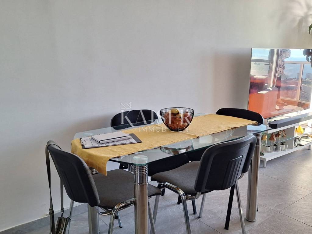 Stan se sastoji od hodnika, open space dnevnog dijela koji čine kuhinja, blagovaonica i dnevni boravak, dvije prostrane spavaće sobe i kupaonice. S balkona se pruža predivan panoramski pogled na Kvarner.