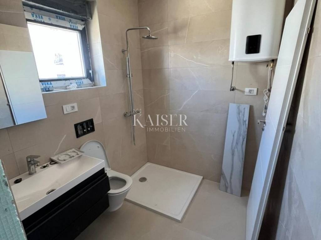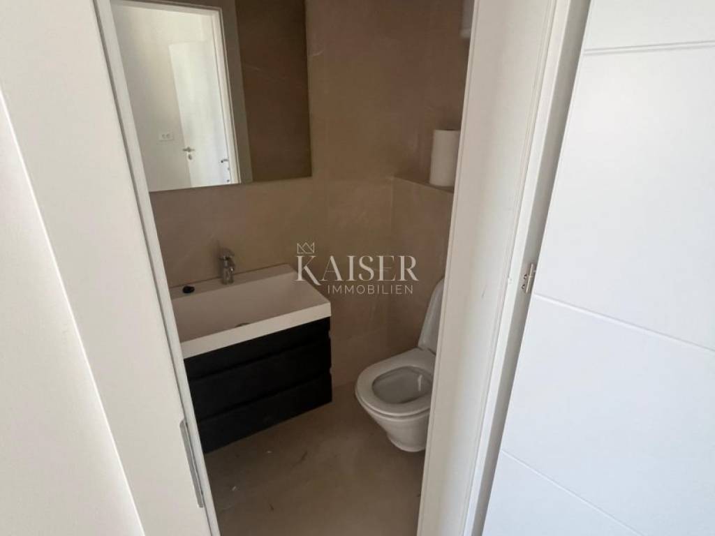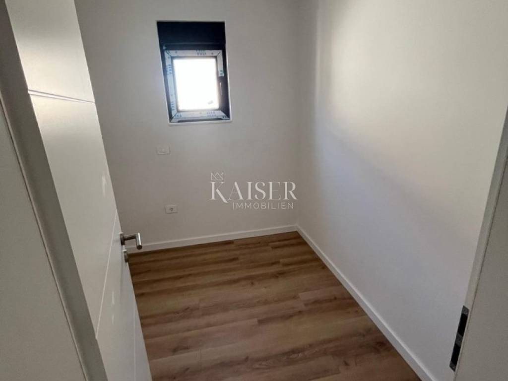 Kaiser Immobilien stavlja u prodaju izuzetno atraktivan trosoban stan smješten na prvom katu suvremene novogradnje na Višnjiku, jednoj od najtraženijih i najugodnijih gradskih četvrti Zadra. Stan površine 100 četvornih metara pažljivo je projektiran kako bi pružio visoku razinu komfora, funkcionalnosti i estetike. Južno-zapadna orijentacija omogućuje obilje prirodne svjetlosti kroz cijeli dan, dok otvoreni prostori poput lođe i terase dodatno proširuju osjećaj slobode i elegancije. Objekt je opremljen suvremenim tehnologijama, uključujući podno grijanje u kupaonici i gostinjskom wc-u, električne rolete, video portafon, klima uređaj, alarmni sustav te protuprovalna vrata, što jamči sigurnost i udobnost stanovanja.