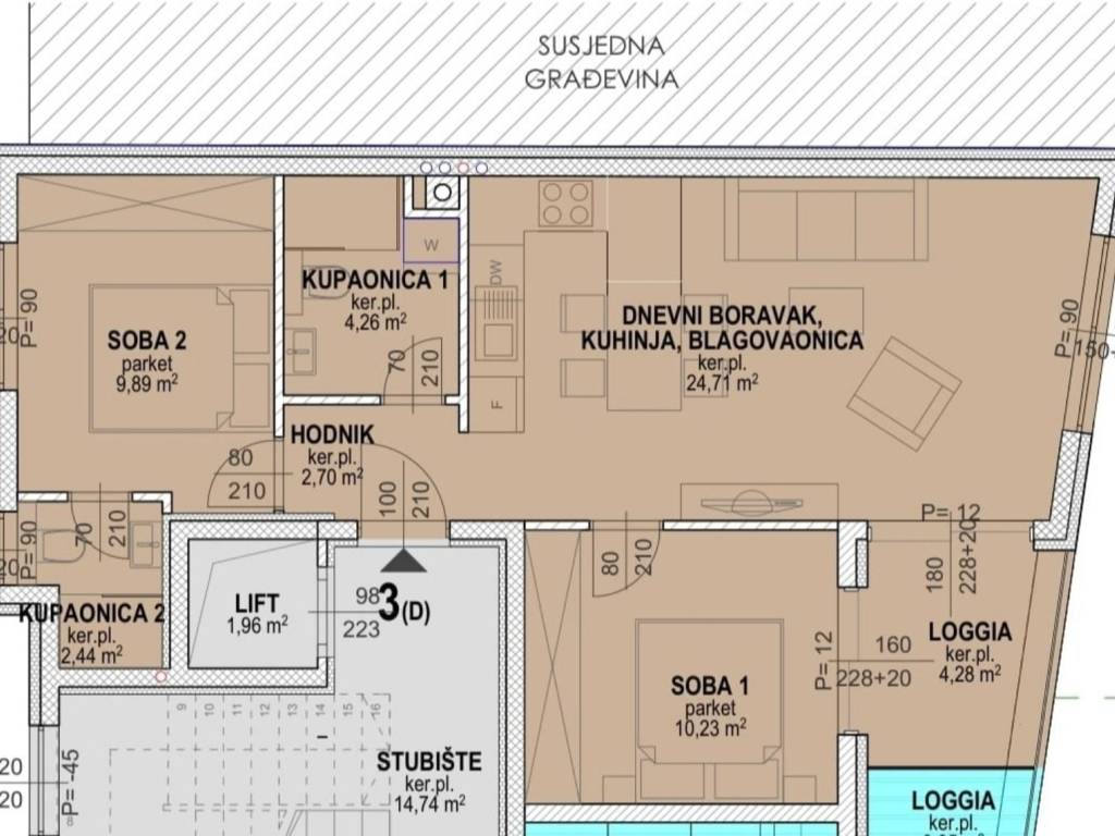 dnevnog boravka/blagovaone/kuhinje(24,71m2)