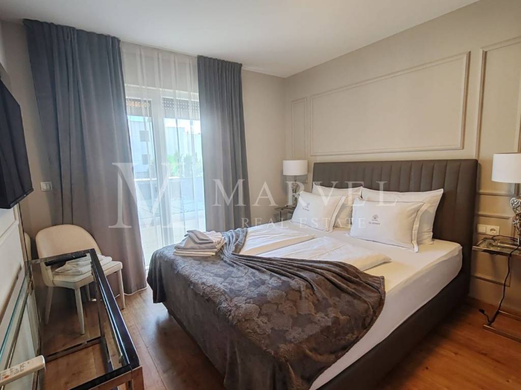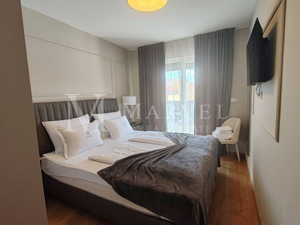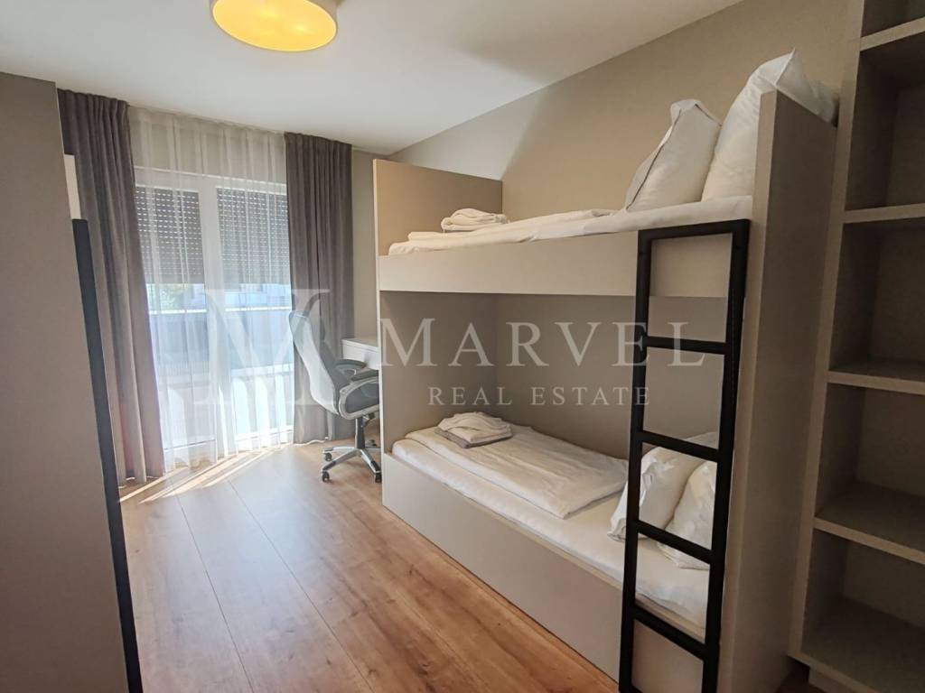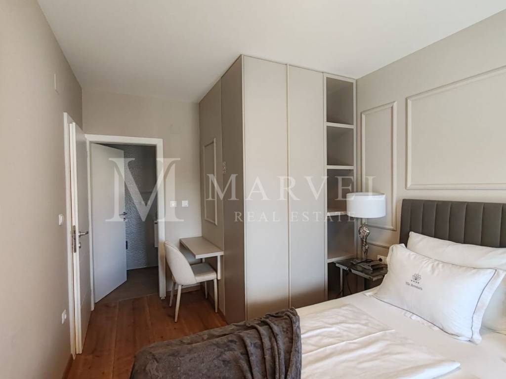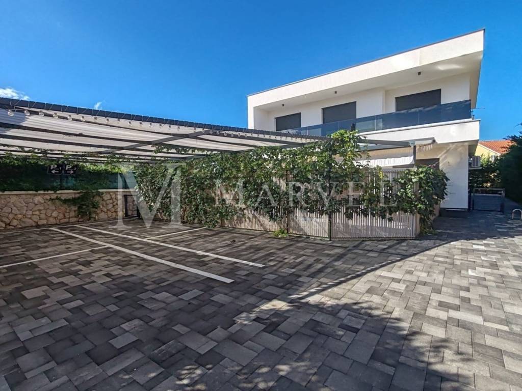 Kuća je vrhunski namještena i potpuno opremljena te se prodaje kao takva. Uz objekt dolaze i dva natkrivena parkirna mjesta.