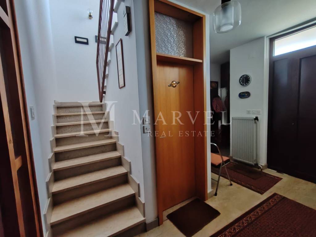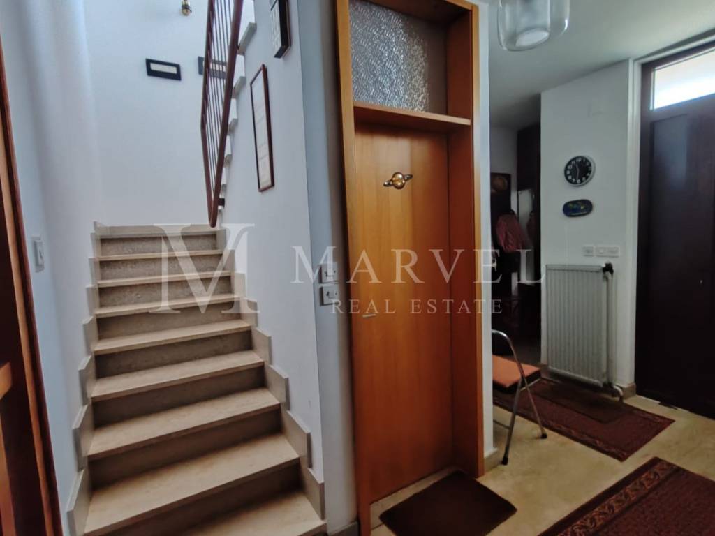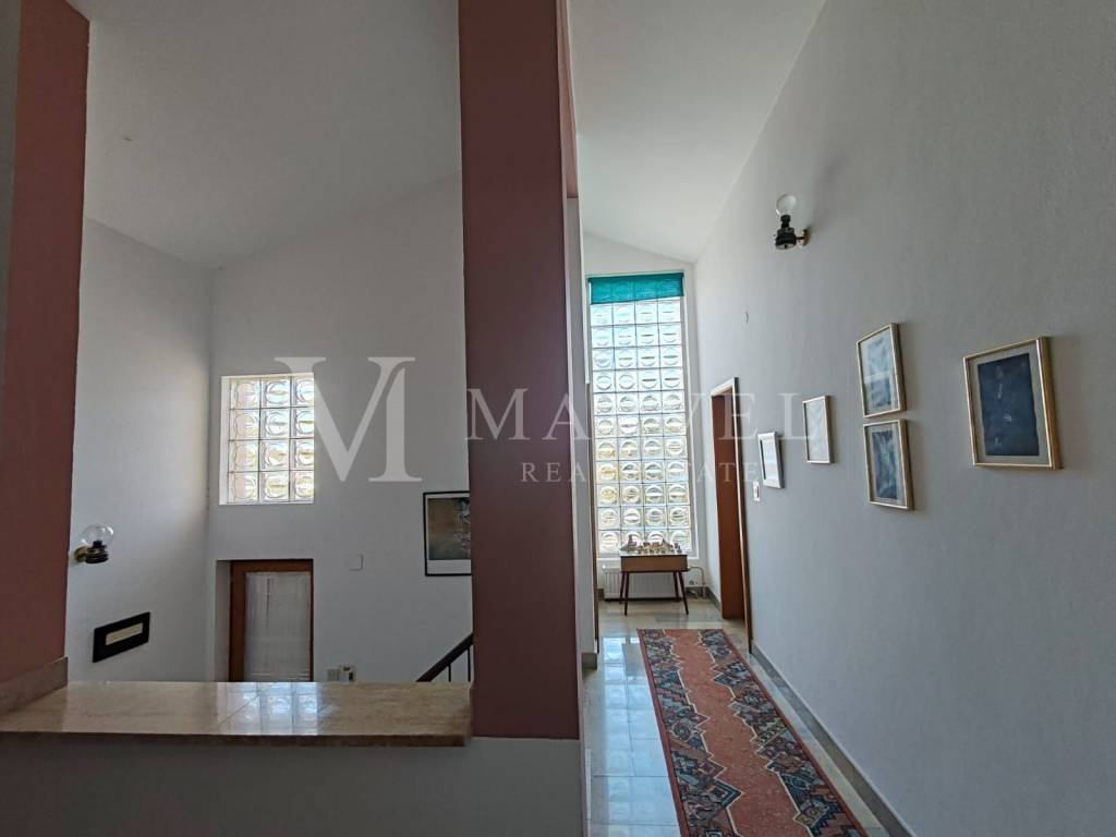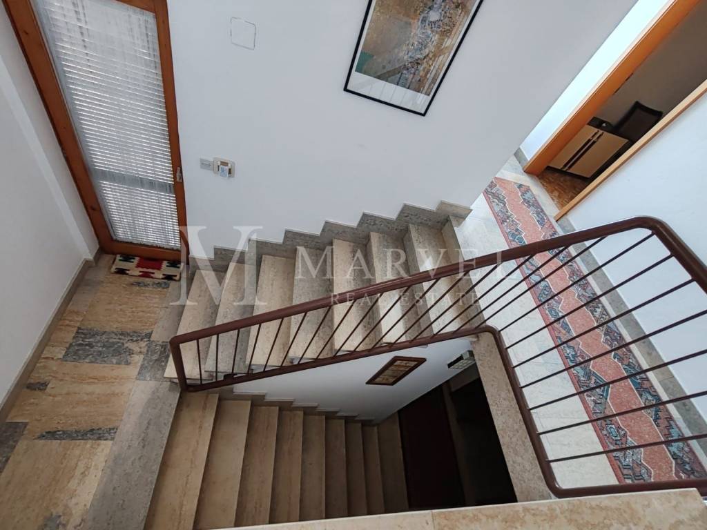 Unutarnje stepenište vodi na svijetao i prostran prvi kat s visokim stropovima. Na katu se nalaze četiri spavaće sobe, od kojih jedna ima vlastitu kupaonicu, dodatna kupaonica i toalet te spremište. Dvije spavaće sobe imaju izlaz na balkon.