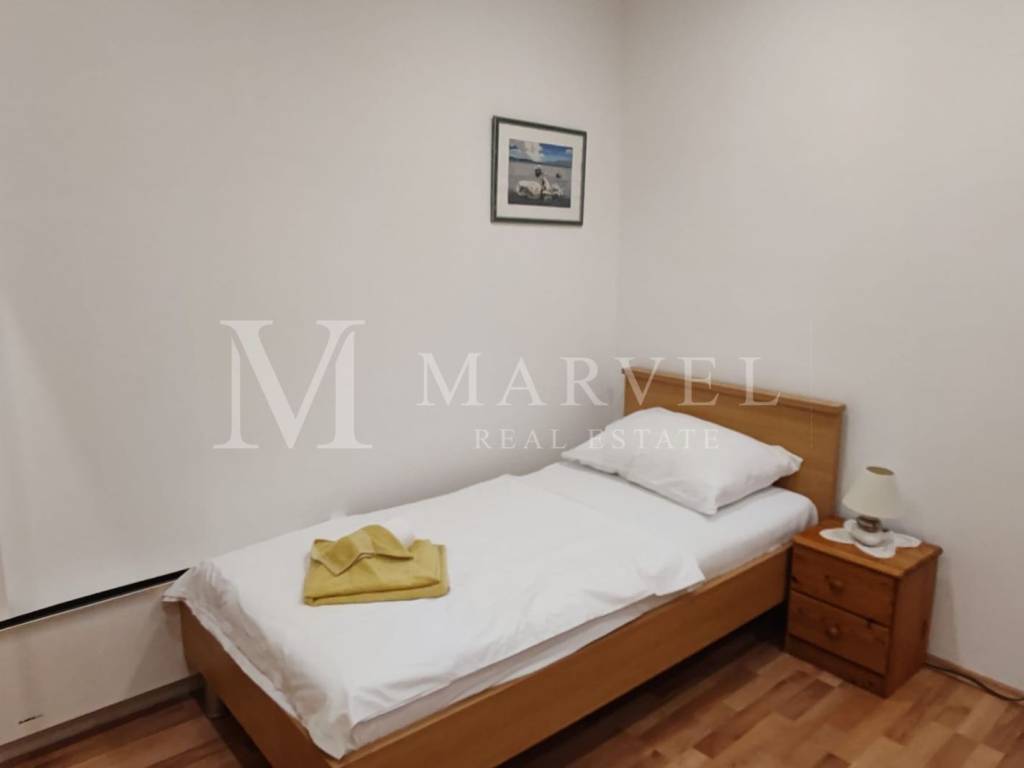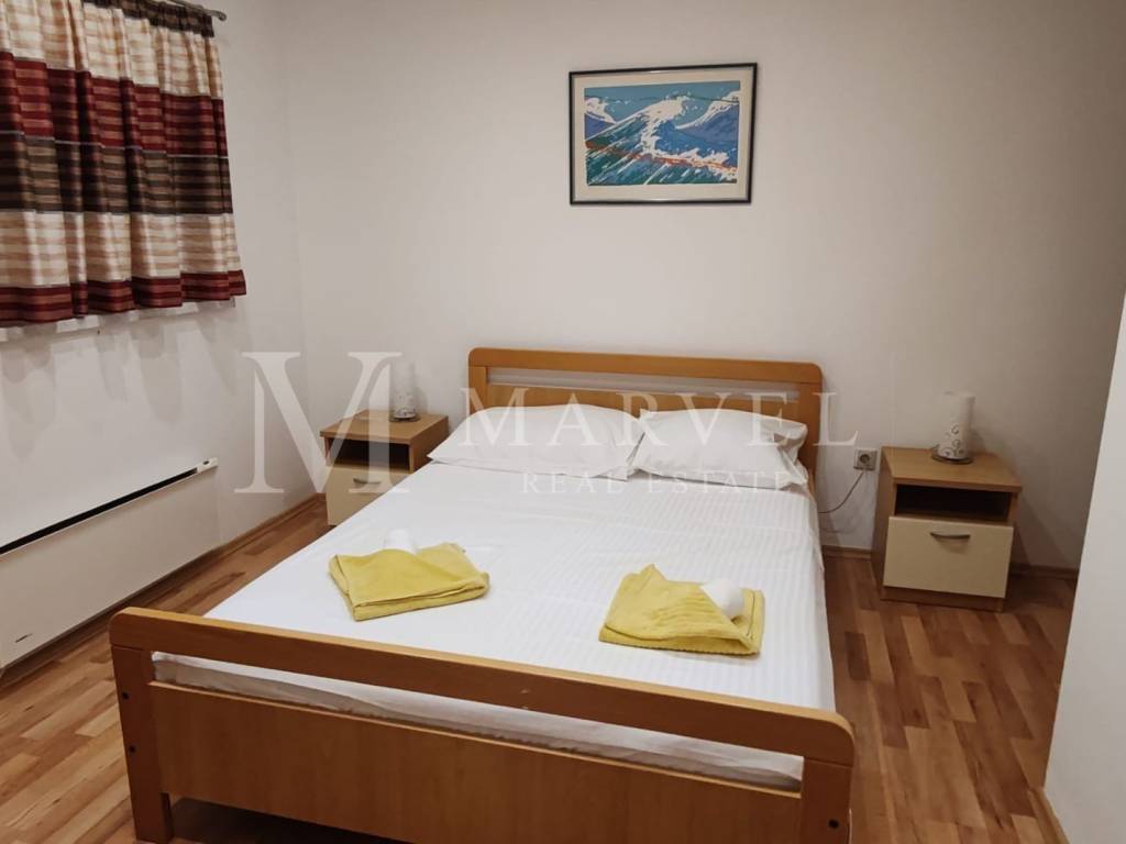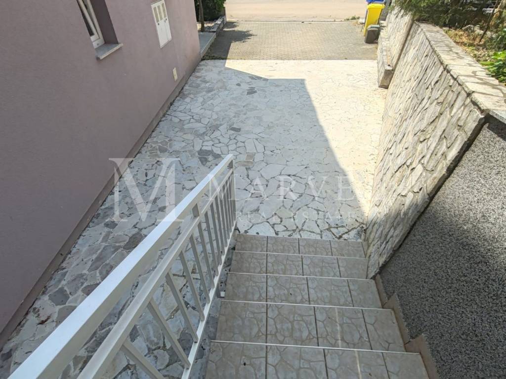 Prizemlje: jednosobni apartman s kuhinjom, blagovaonom i dnevnim boravkom s izlazom na uređenu okućnicu savršenu za boravak na otvorenom.