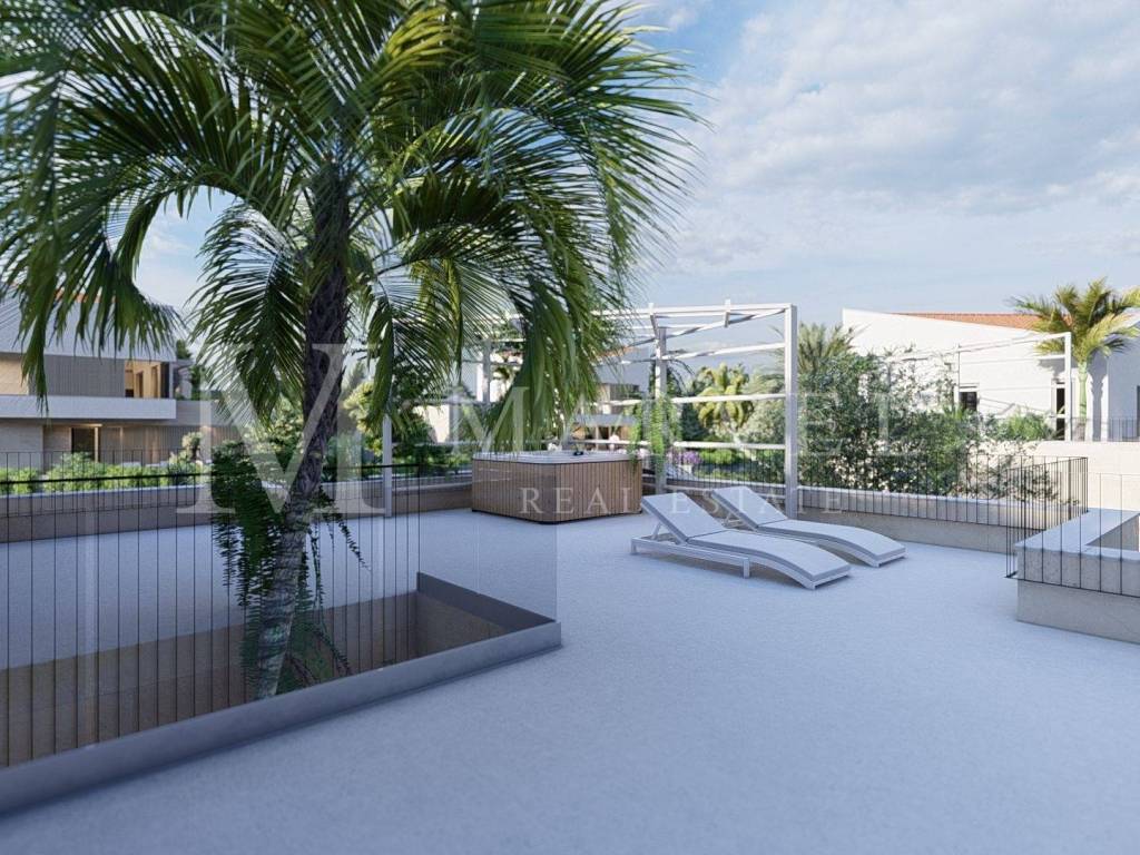 Na prvom katu nalaze se dodatne dvije master spavaće sobe s vlastitim kupaonicama, ostava te prostrana terasa sa sunčalištem i jacuzzijem savršeno mjesto za večernje opuštanje s pogledom.