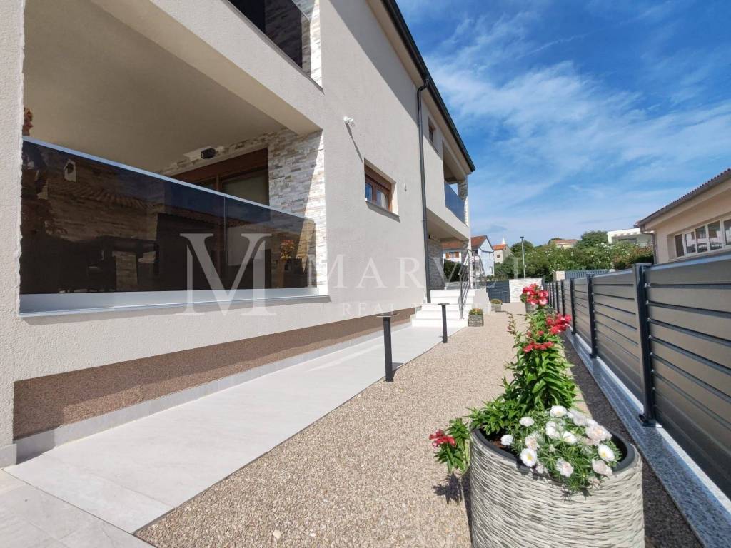 Prizemlje obuhvaća prostrani open space dnevni boravak s kuhinjom i blagovaonicom, jednu spavaću sobu s vlastitom kupaonicom, dodatnu kupaonicu, saunu i dvije natkrivene terase. Jedna od terasa smještena je uz bazen iz kojeg se pruža pogled na more. Bazen je opremljen sustavom za protustrujno plivanje i masažnim funkcijama najnovije tehnologije.