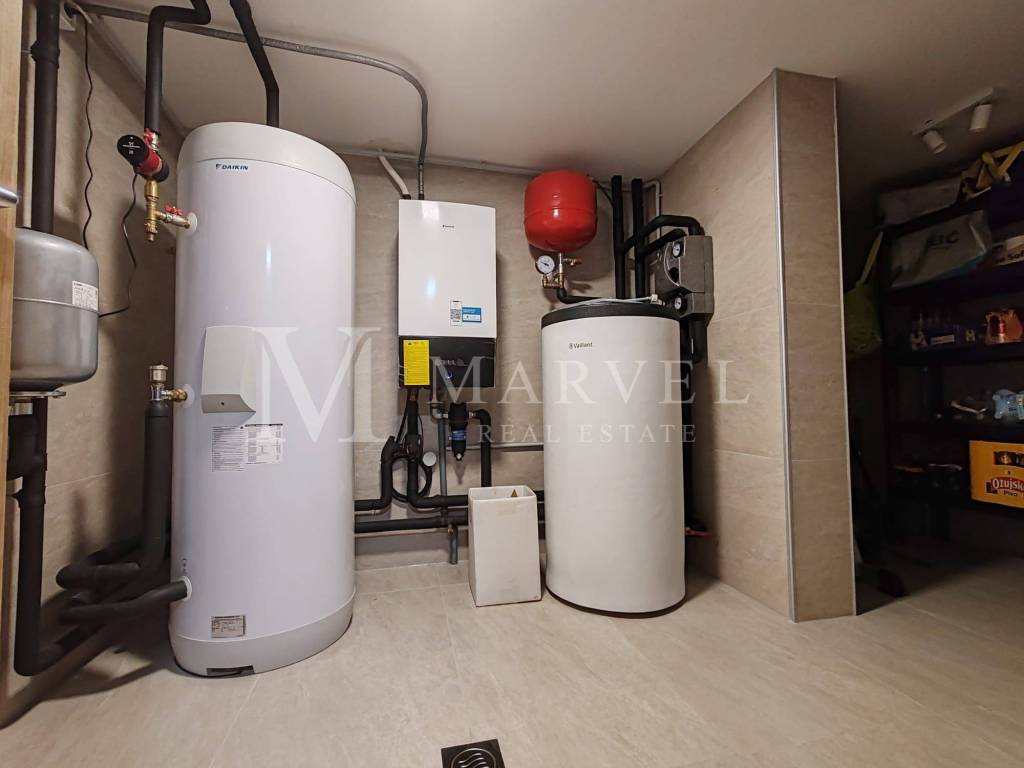 Dodatne značajke nekretnine uključuju sustav grijanja putem toplinske pumpe, podno grijanje, keramičke podne obloge u svim prostorijama te vrhunsku vanjsku stolariju kombinaciju PVC-a i aluminija s višeslojnim staklom.