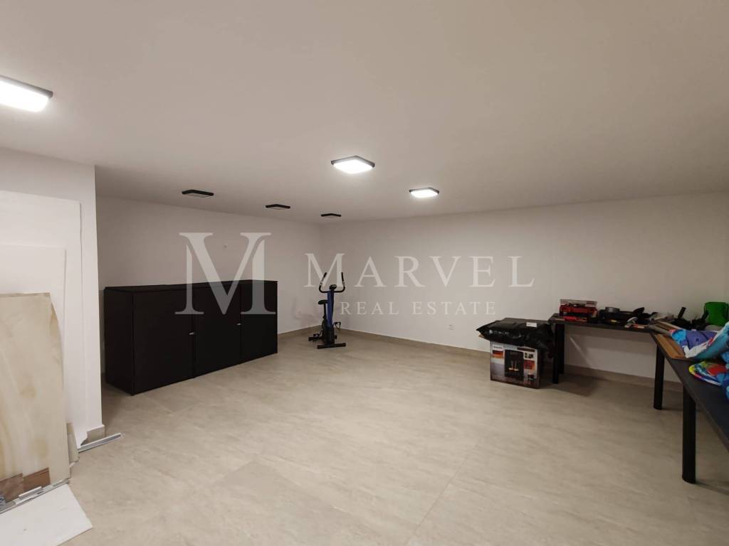 U podrumu se nalaze konoba površine 30 m, strojarnica, vešeraj, ostava, toalet i garaža s dva parkirna mjesta.