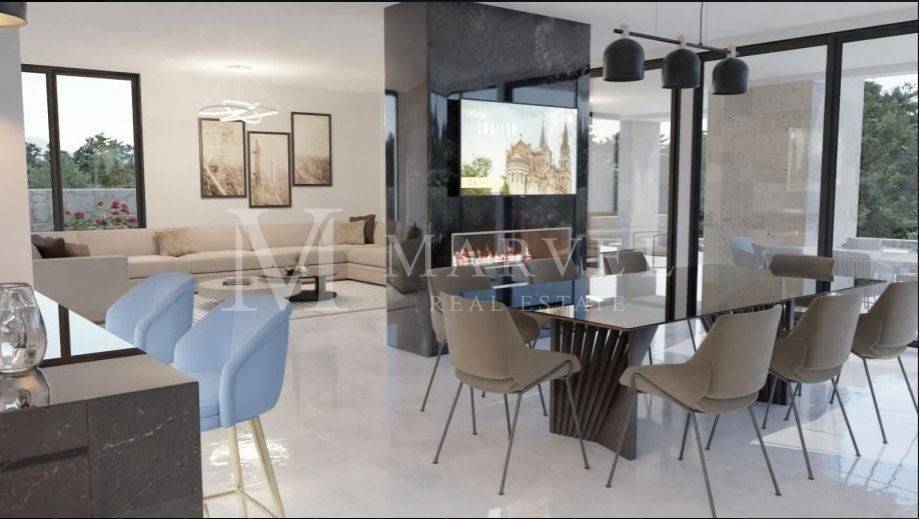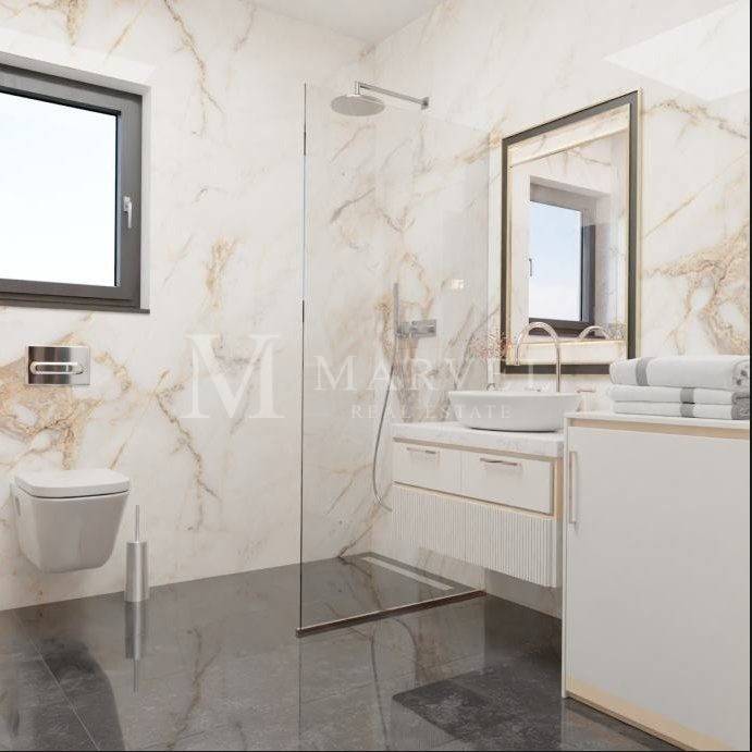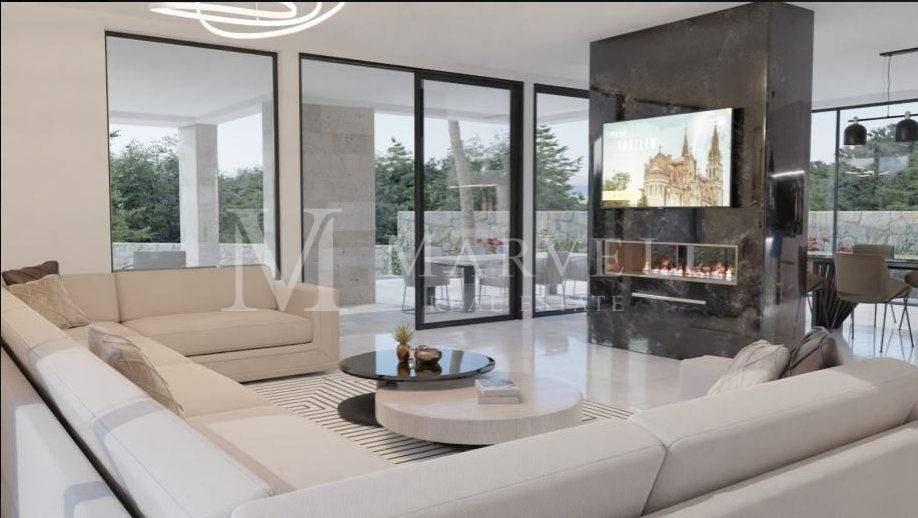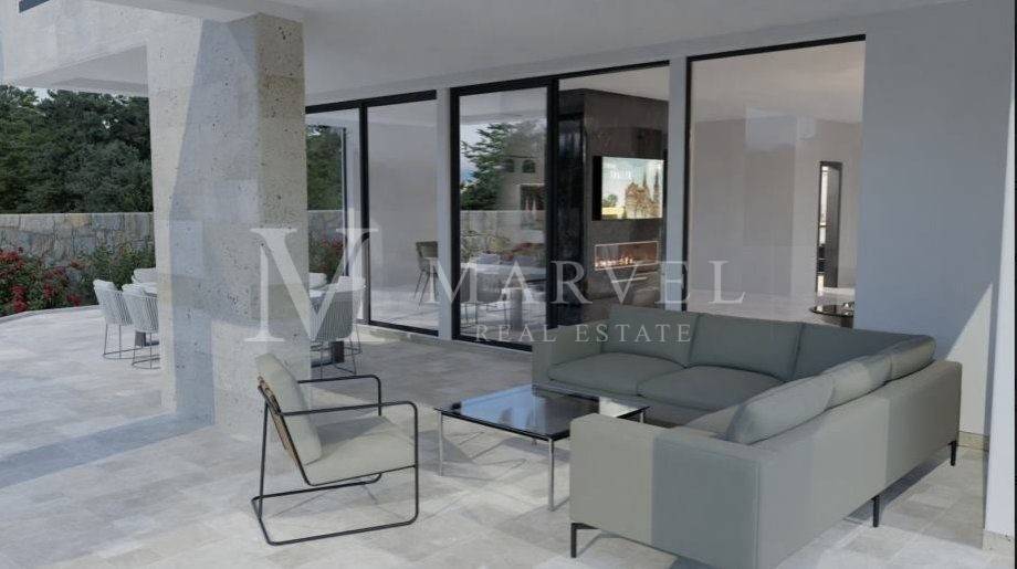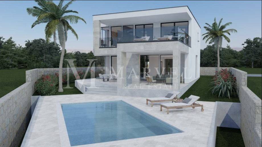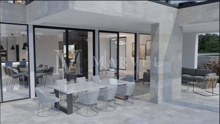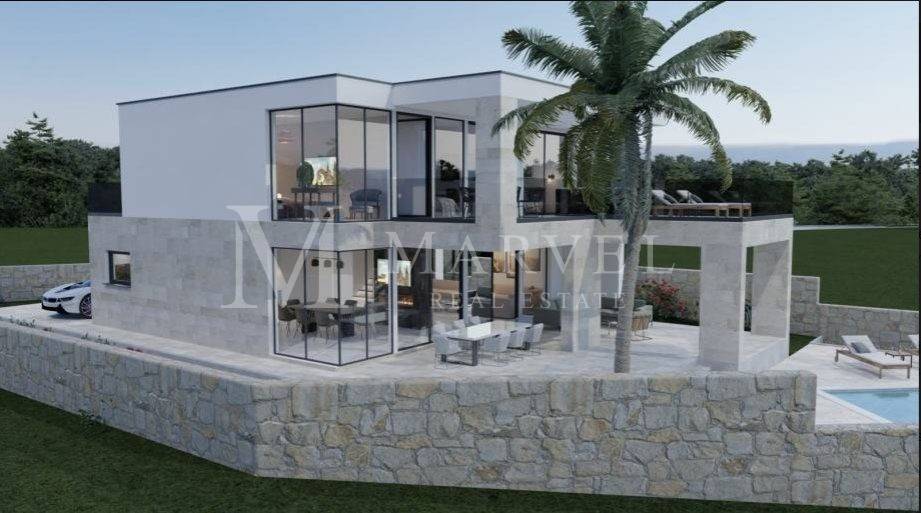 Na otoku Krku, u mirnom predjelu u okolici grada Krk, prodaje se moderna vila u izgradnji s prekrasnim pogledom na more. Smještena na parceli od 607 m, ova luksuzna nekretnina prostire se na 256 m i sastoji se od prizemlja i kata, nudeći sve potrebno za udoban i kvalitetan život.