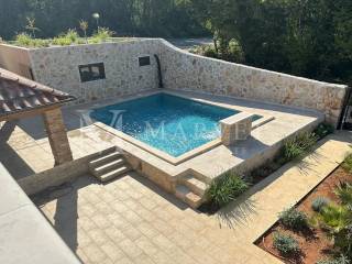 Novoizgrađena kamena kuća na Otoku Krku, smještena na mirnoj lokaciji u širem području Solina, nudi luksuz i privatnost. Površina vile iznosi 150 m, a s pomoćnim objektima i natkrivenim terasama ukupno 220 m, dok okućnica obuhvaća 455 m. Kuća se sastoji od prizemlja i kata, s moderno uređenim prostorima koji uključuju kuhinju, blagovaonicu, dnevni boravak, kupaonicu i tri spavaće sobe, od kojih dvije imaju vlastite kupaonice.
