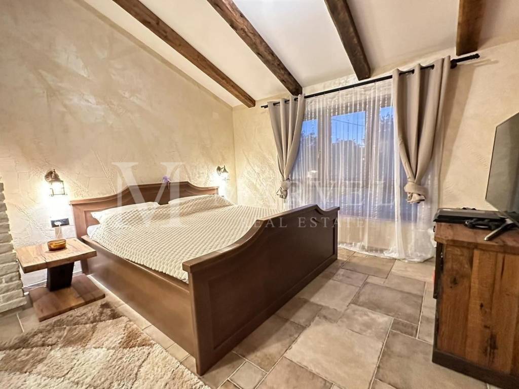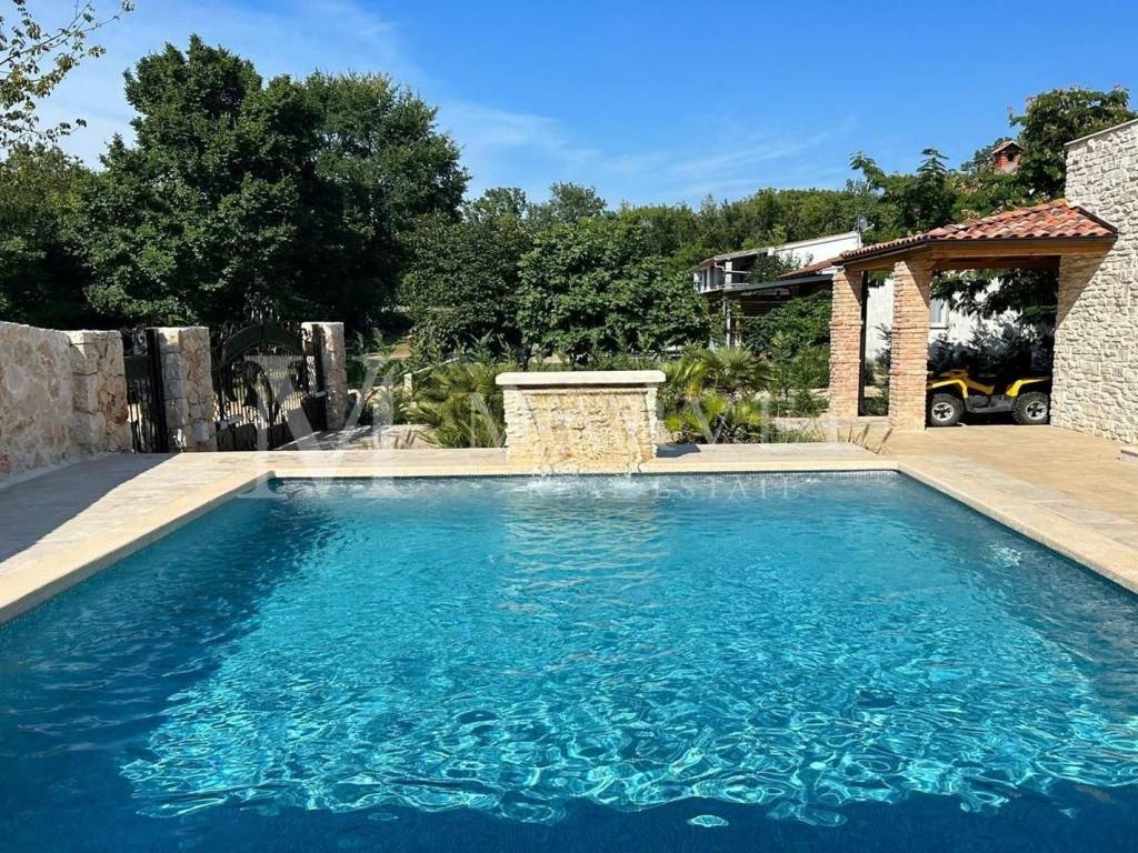 Posebnost ove nekretnine čini bazen površine 32,5 m s mozaikom, vodopadom, grijanjem i slanom vodom, izrađen s vrhunskom tehnikom. Na okućnici se također nalaze jacuzzi, vanjski kamin obložen kamenom s natkrivenim prostorom za druženje, kao i jedinstvena ulazna vrata izrađena po narudžbi. Unutrašnjost kuće opremljena je masivnim hrastovim namještajem, a dodatnu udobnost osiguravaju klimatizacija i video nadzor.
