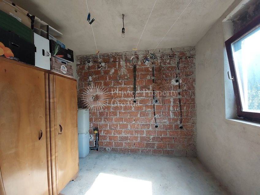 Prizemlje se sastoji od hodnika, kuhinje s dnevnim boravkom, kupaonice i dvije spava��e sobe. Unutarnje stepenice vode na prvi kat, koji ima isti raspored kao prizemlje, ali nije dovr��en. Drugi kat je neure��en, ��to nudi dodatni potencijal za pro��irenje. Jedna od prostorija na ovoj eta��i ima malu loggiu s ugodnim pogledom na susjedstvo. Zahvaljuju��i zasebnom hodniku sa stubi��tem, ku��a se mo��e podijeliti u tri zasebna apartmana, ��to je ��ini idealnom za iznajmljivanje ili kao ku��u za odmor.