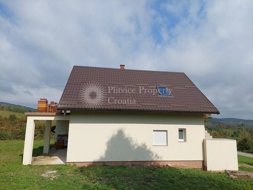 Zakoračite u svijet prostranosti i spokoja s ovim velebnim imanjem u blizini Rakovice. Izgrađena 2003. i pažljivo renovirana 2020., ova nekretnina spaja modernu udobnost s bezvremenskim šarmom. S ukupnom površinom od 160 m, ova ekspanzivna glavna zgrada nudi udobno i šarmantno životno iskustvo. S devet soba, uključujući pet spavaćih soba i dvije kupaonice, ima dovoljno prostora za obitelj i goste.