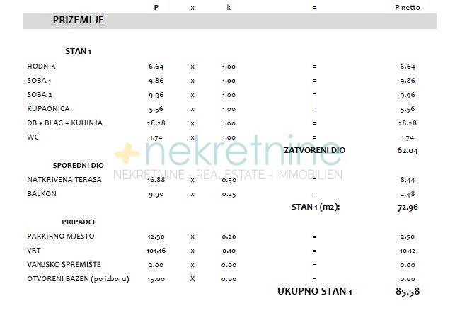 Privatni vrt: 101,16 m s mogućnošću izgradnje bazena