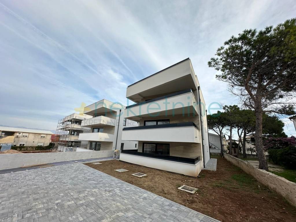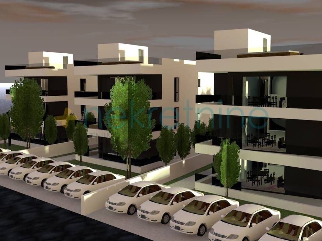 Svaki apartman prostire se na površini od 98,38 m, s neto stambenim prostorom od 84,16 m. Prostrani dnevni boravak s integriranom kuhinjom i blagovaonicom zauzima impresivnih 36,46 m te vodi na veliku natkrivenu terasu od 28,25 m, odvojenu velikom staklenom stijenom koja čini prostor izuzetno svijetlim i otvorenim. Svaki apartman sadrži dvije spavaće sobe, svaka veličine 11 m, pri čemu jedna spavaća soba ima vlastitu kupaonicu od 5,37 m. Uz to, apartman ima dodatnu kupaonicu od 3,68 m te ostavu od 2,53 m, pružajući funkcionalan i udoban životni prostor. Svakom apartmanu pripadaju i dva parkirna mjesta, što dodatno povećava praktičnost ove ponude.