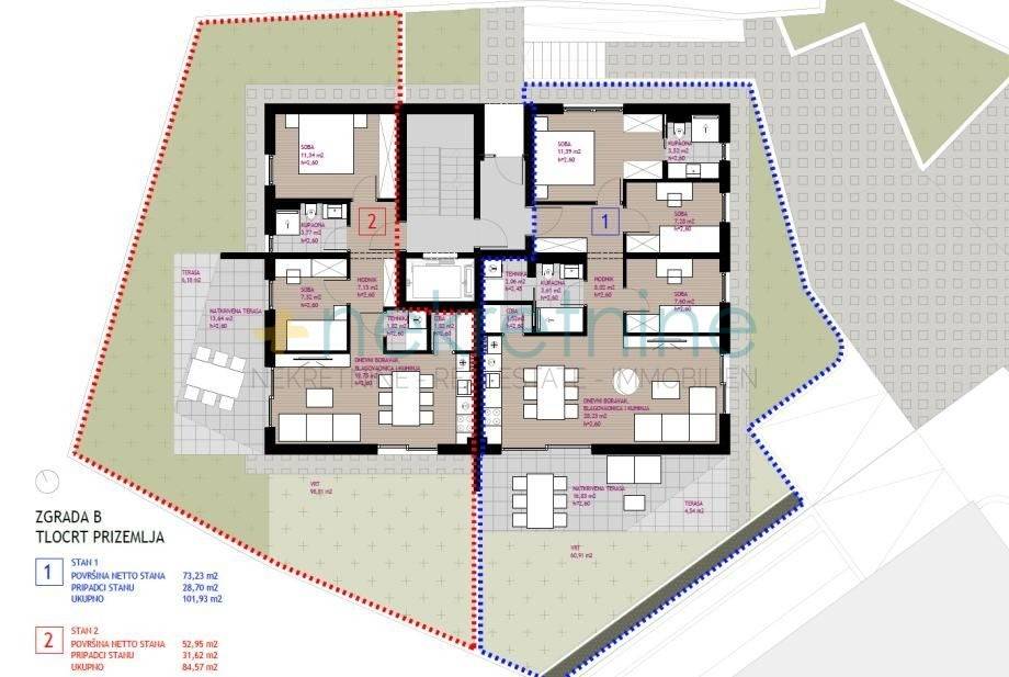 Stan B2 u prizemlju moderne zgrade s 6 stambenih jedinica Vaš novi dom s vrtom i terasama