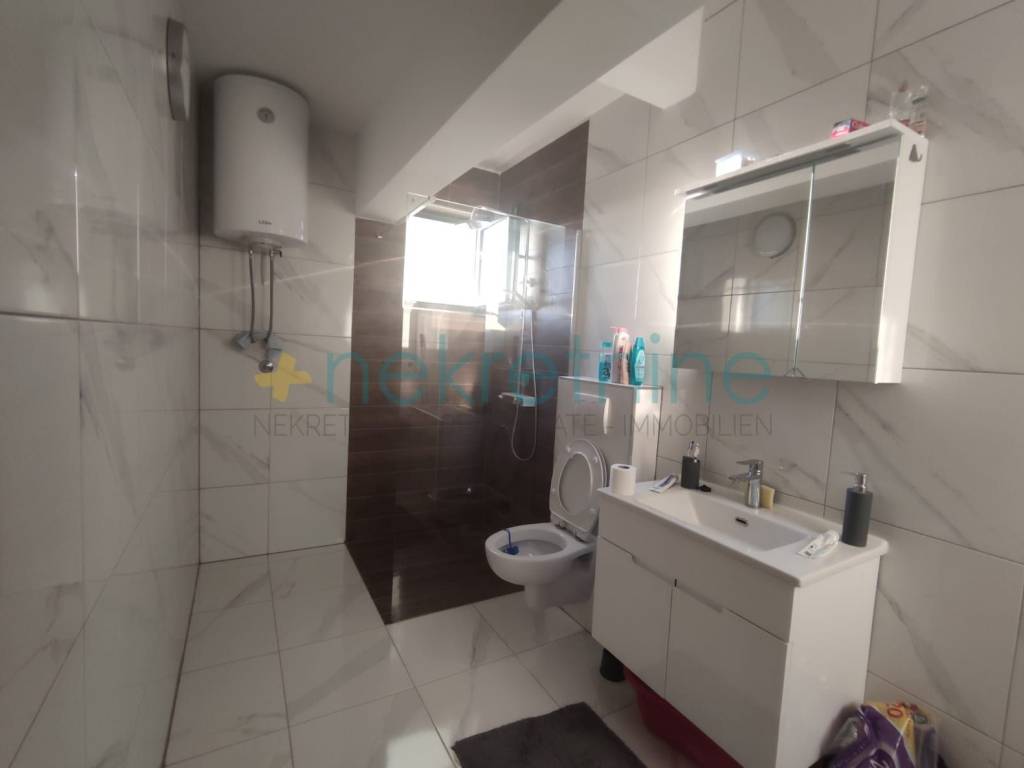 Kuća je na dvije etaže, prizemlje i kat sa ukupno 220 m2 stambenog prostora. U prizemlju se nalazi jedan stan i garaža. Stan u prizemlju je namješten i sastoji se od kuhinje, blagovaone, dnevnog boravka, dvije spavaće sobe, kupaonice, toaleta, ostave i velike terase. Na prvom katu nalaze se dva jednosobna namještena apartmana sa prostranim terasama. Kuća je ima izvrsnu izolaciju, a za grijanje i hlađenje koriste se klima uređaji.