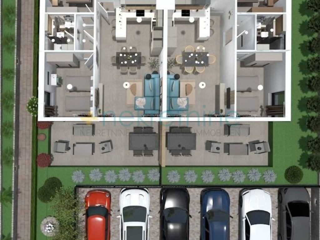 Prodaje se moderno dizajniran stan (oznaka S2) u prizemlju manje zgrade s ukupno šest stambenih jedinica. Zgrada se nalazi u mirnoj ulici novoizgrađenog naselja, na atraktivnoj lokaciji svega 350 metara od mora i prve plaže.