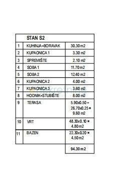 Stan S2 prostire se na dvije etaže i ukupno 94,30 m, a sastoji se od: