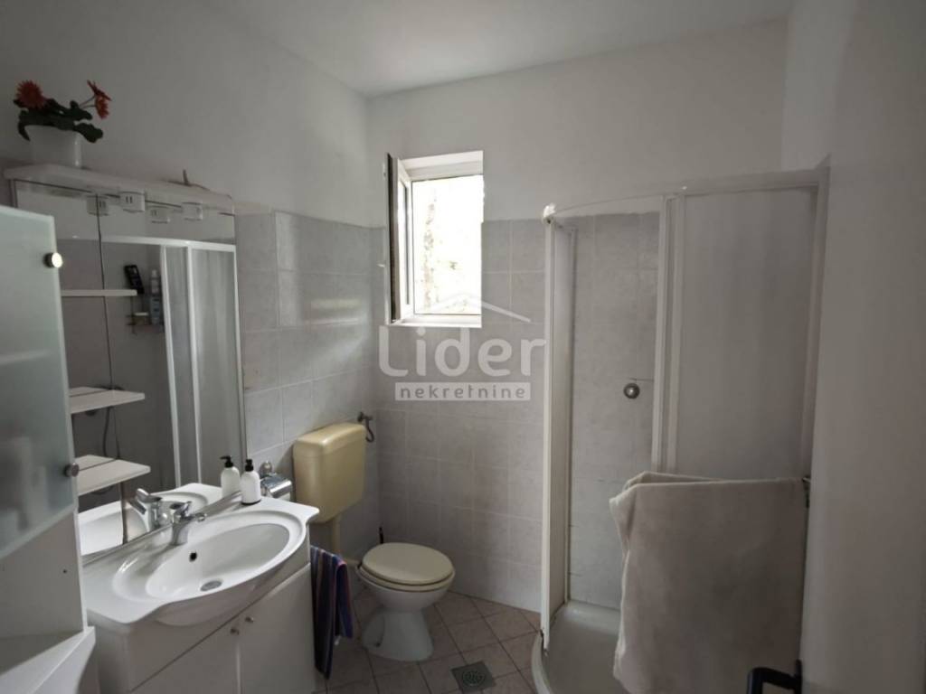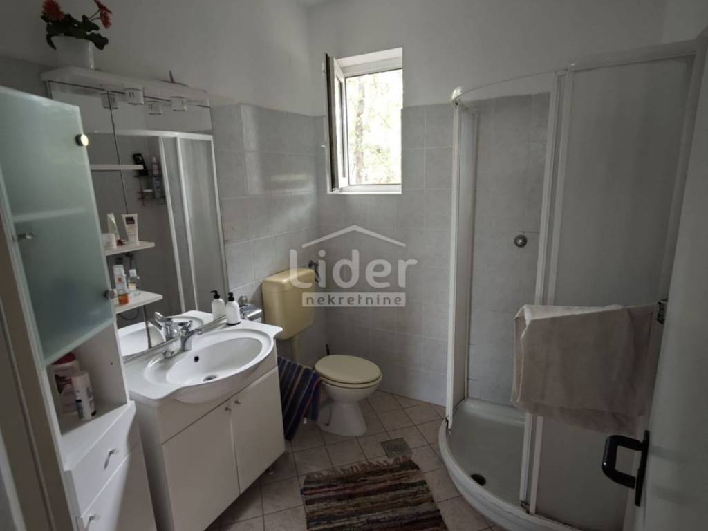 Prodaje se samostojeća prizemnica površine 110 m2, s lijepom, ozelenjenom okućnicom od 300 m2 na kojoj se nalazi natkrivena terasa, kamin parking. Sastoji se od dvije spavaće sobe, kuhinje, blagovaonice i dnevnog boravka sa kaminom, hodnika, kupaonice te garaže s vešerajem i WC-om. Kuća je u potpunosti namještena, klimatizirana i odmah useljiva. Udaljenost od mora i plaže cca 1500 m.
