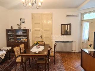 Stan je održavan, a drvena stolarija i hrastov parket daju mu klasičan šarm i toplinu.